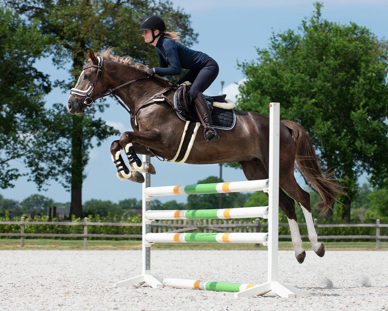 - Отлична абсорбция на удари: Мемори пяната предлага ефективно поглъщане на ударите, предпазва ставите на коня и повишава комфорта при езда.