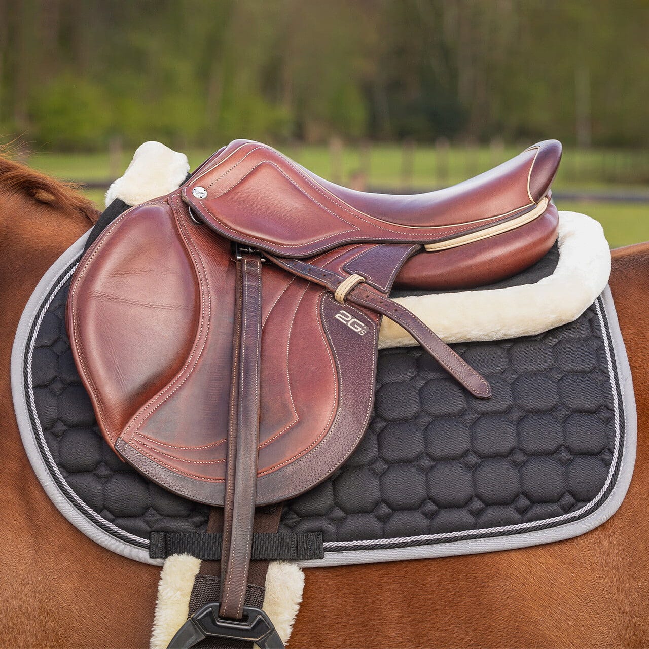 - Подобрено разпределение на натиска: Благодарение на формоващия се пълнеж, натискът от седлото се разпределя равномерно върху по-голяма площ, което намалява натоварването върху гърба на коня.