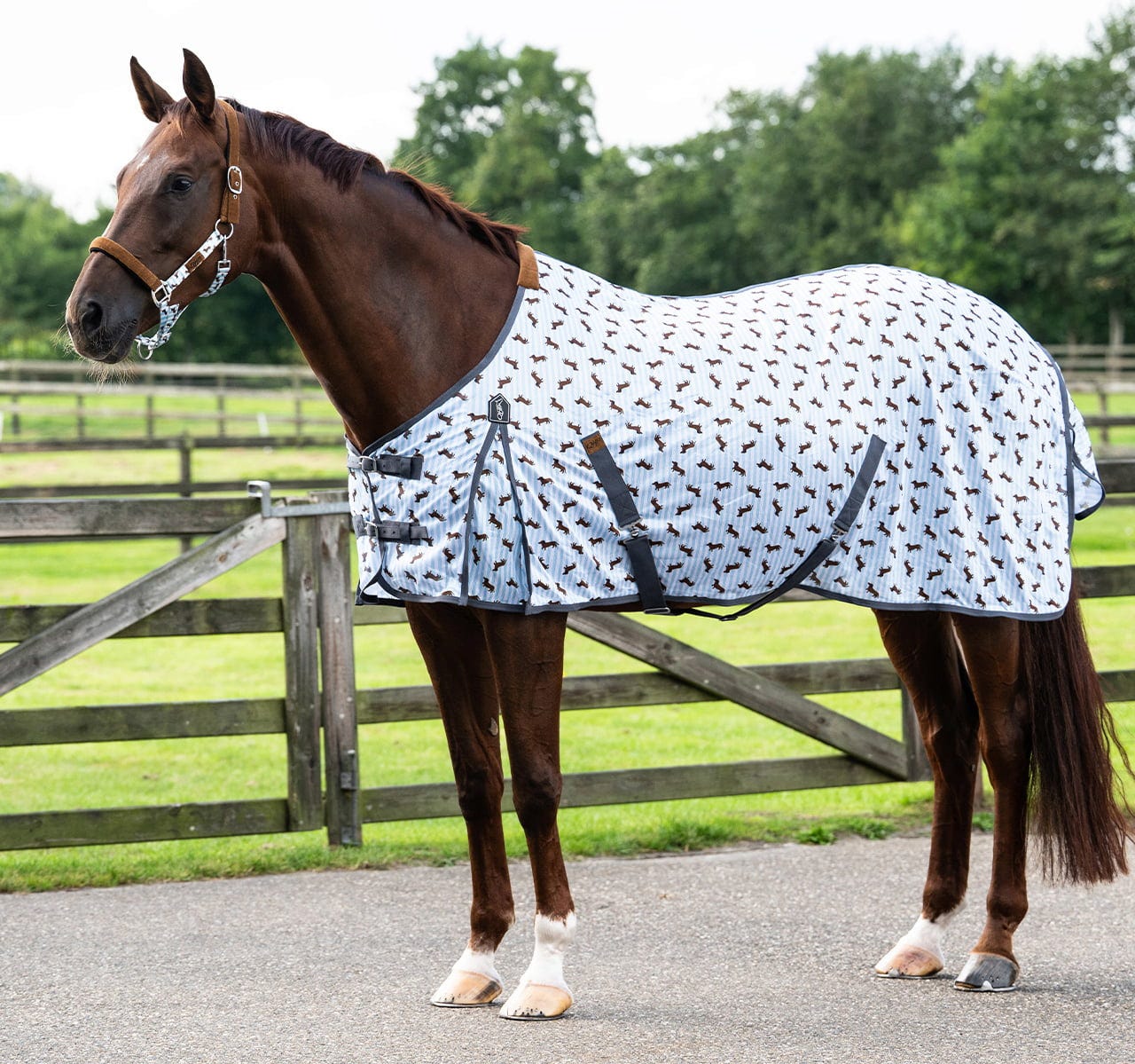 За да може вашият кон да се наслаждава неограничено на времето си навън, този модел е оборудван с щедри свободи за движение и широк капак за опашката. Гладката найлонова вложка в областта на гърдите допълнително предотвратява неприятни протривания, дори когато на пасището стане по-динамично. Оптималното прилягане се гарантира от двойното закопчаване с катарами отпред, както и от практичните еластични ремъци за краката и неплъзгащия се ремък за опашката.