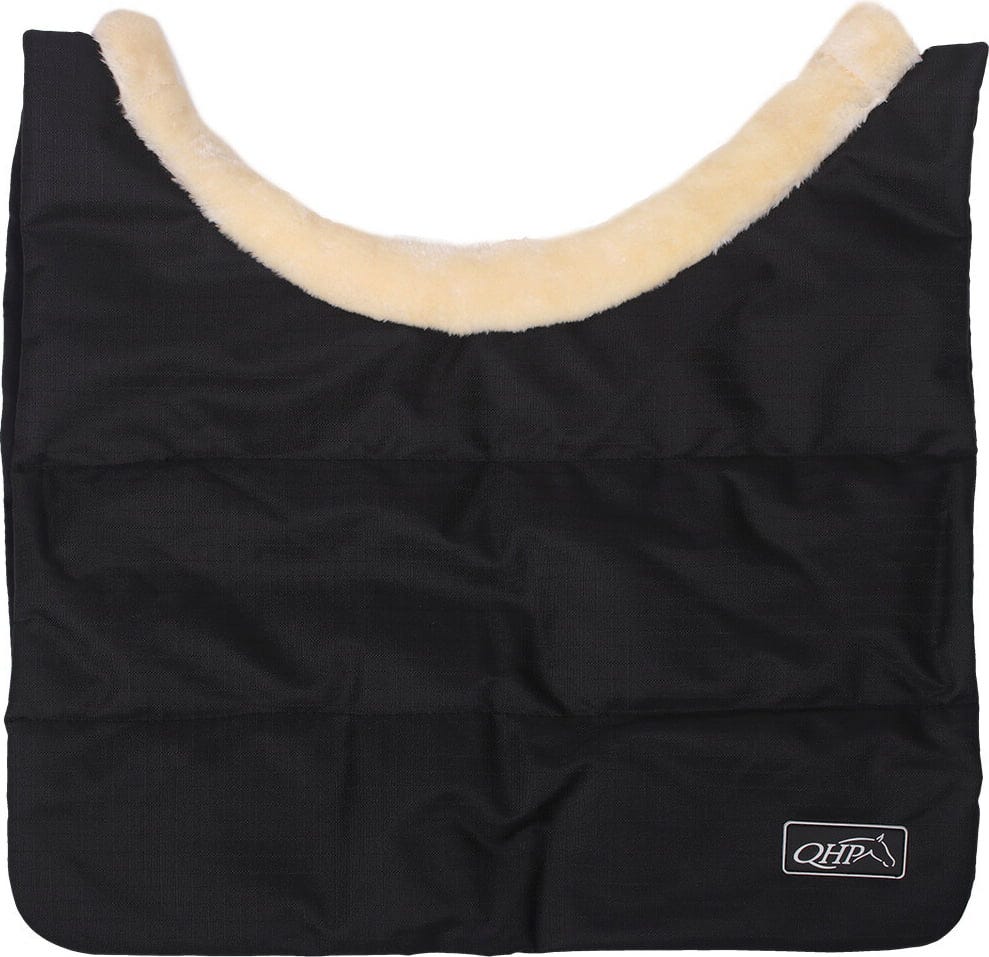 Предпазителят за гърдите Ontario от QHP е идеалното решение за коне, които страдат от натиска и триенето на конските одеяла и бързо развиват протривания или точки на натиск. Изработен от издръжлива 600D Rip-Stop материя, този предпазител предлага здрав външен слой и освен това е водоустойчив. Вътрешността глези вашия кон с мека подплата и лек пълнеж от 150 грама полиестерни влакна, които осигуряват допълнителен комфорт.