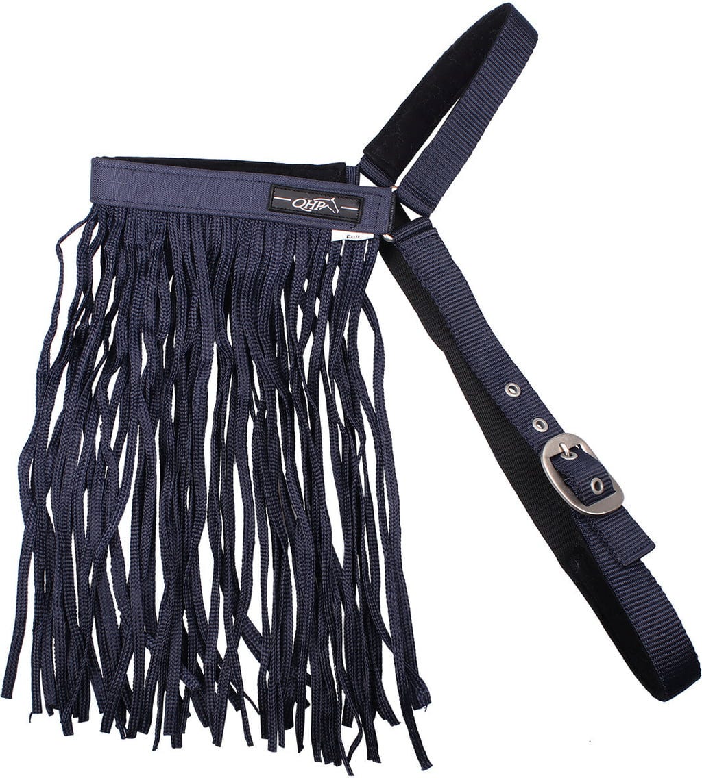 Дръжте мухите и другите насекоми надеждно далеч от главата на вашия кон – с практичните ресни против мухи от QHP. Тази висококачествена маска против мухи впечатлява със своя обмислен дизайн: можете лесно да я използвате и без оглавник, благодарение на иновативното закопчаване с катарами. Така вашият кон е по всяко време отлично защитен срещу досадните мухи, независимо дали е на пасището, в откритата конюшня или по време на езда.