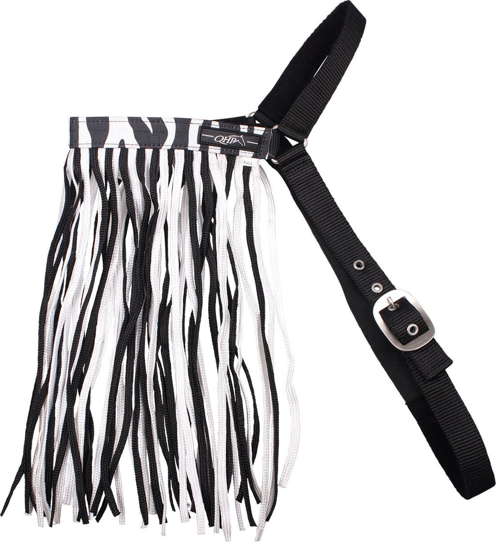 Дръжте мухите и другите насекоми надеждно далеч от главата на вашия кон – с практичните ресни против мухи от QHP. Тази висококачествена маска против мухи впечатлява със своя обмислен дизайн: можете лесно да я използвате и без оглавник, благодарение на иновативното закопчаване с катарама. Така вашият кон е по всяко време отлично защитен срещу досадните мухи, независимо дали на пасището, в откритата конюшня или по време на езда.