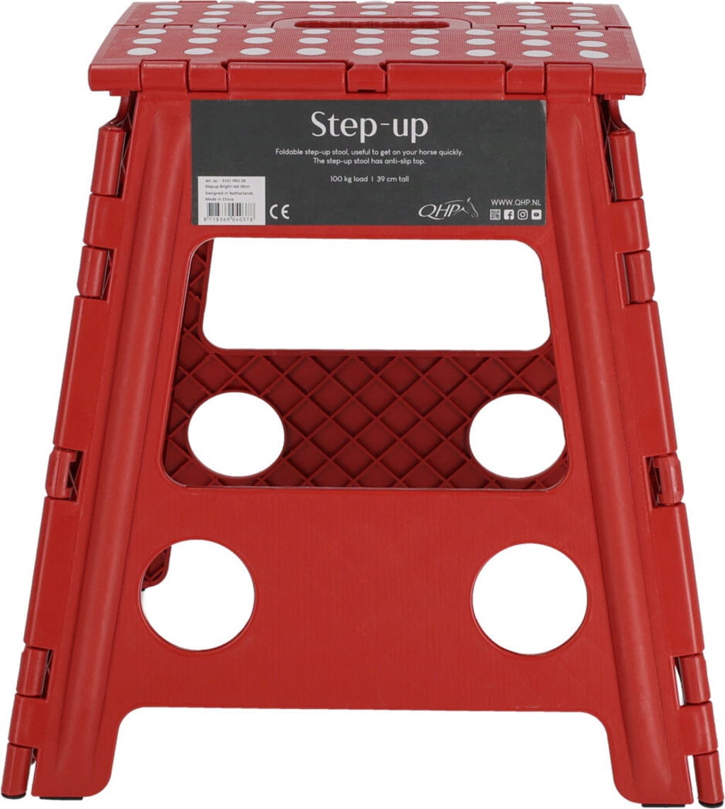 Сгъваемото столче Step-up от QHP е вашият надежден помощник в конюшнята, на състезания или на плаца. Независимо дали се качвате на коня или сплитате гривата – това практично сгъваемо столче ви осигурява необходимата височина и безопасност. Благодарение на компактния му дизайн, можете лесно да го сгънете и да го вземете навсякъде със себе си.