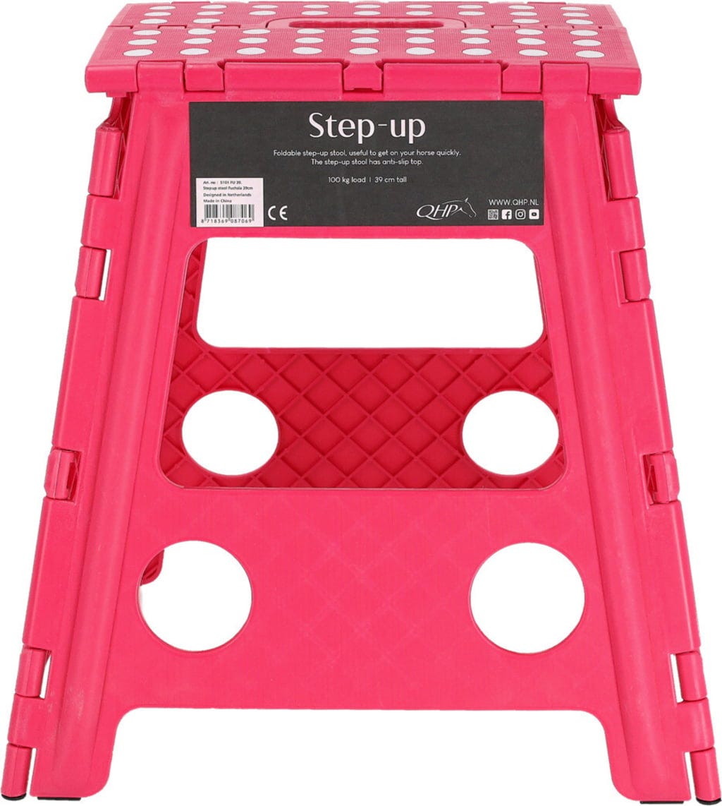 Сгъваемото столче Step-up от QHP е вашият надежден помощник в конюшнята, на състезания или на плаца. Независимо дали се качвате на коня или сплитате гривата – това практично сгъваемо столче ви осигурява необходимата височина и безопасност. Благодарение на компактния му дизайн, можете лесно да го сгънете и да го вземете навсякъде със себе си.