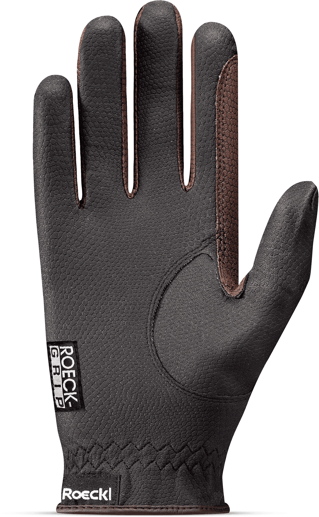 Тази класическа ръкавица от ROECKL впечатлява визуално с кантове в контрастни цветове и стилизирана ръка върху характерната лента за ръка. По отношение на материал, кройка и комфорт при носене, тази ръкавица отговаря на оригиналната ROECK-GRIP. Благодарение на ексклузивния материал ROECK-GRIP®, тази ръкавица е много дишаща, еластична и мека с едновременно изключително сцепление и чувствителност за поводите. Тъй като отделните части са прецизно зашити заедно на ръка с максимален толеранс на шева от един милиметър, прилягането, комфортът при носене и качеството на обработка също отговарят на най-високите стандарти.