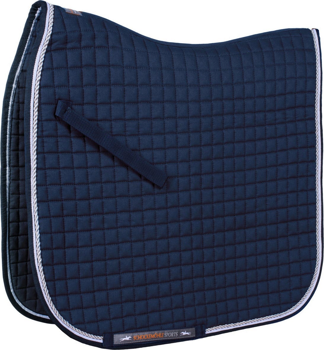 Опростена памучна подложка за седло, зашита на малки карета и с функция за поглъщане на удари. Тя е с координиран двуцветен кант и елегантна декоративна корда. Със здрава горна подплата и бродерия на логото.
