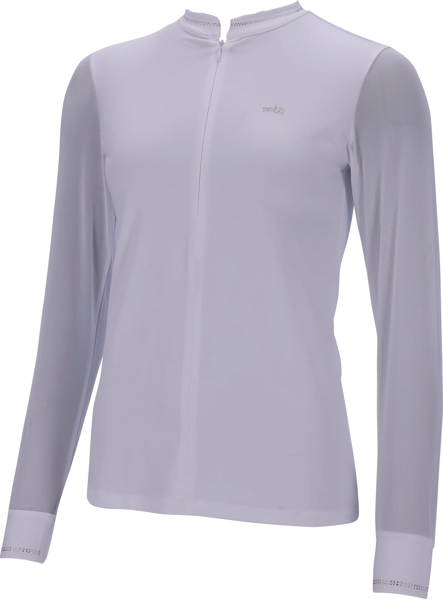 Страхотна състезателна тениска с дълъг ръкав и отлични функционални свойства. Визуално, тениската с дълъг ръкав впечатлява със скрит полуцип отпред и щедри детайли от кристали на яката, гърдите и маншетите. Сместа от полиестер/еластан е дишаща, бързосъхнеща и антибактериална. В допълнение, плътната материя предлага UV защита.