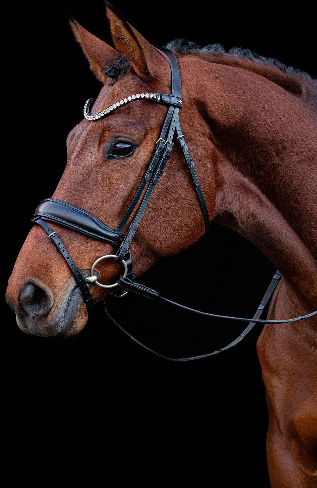 Юзда, излязла директно от книжка с картинки - Юздата Siena печели точки заради своята прилягаща форма, комфорт и външен вид. Изработена от висококачествена, растително дъбена кожа, тя е с анатомично оформена част за глава и нос. Специалният халтер с изрези за скулите и подплатени D-образни пръстени обещава оптимален комфорт. Кръглата, безшевна лента за вежди с големи кристали добавя нотка блясък и блясък. Може лесно и бързо да се сменя с помощта на тик-так закопчалки и допълнително велкро.