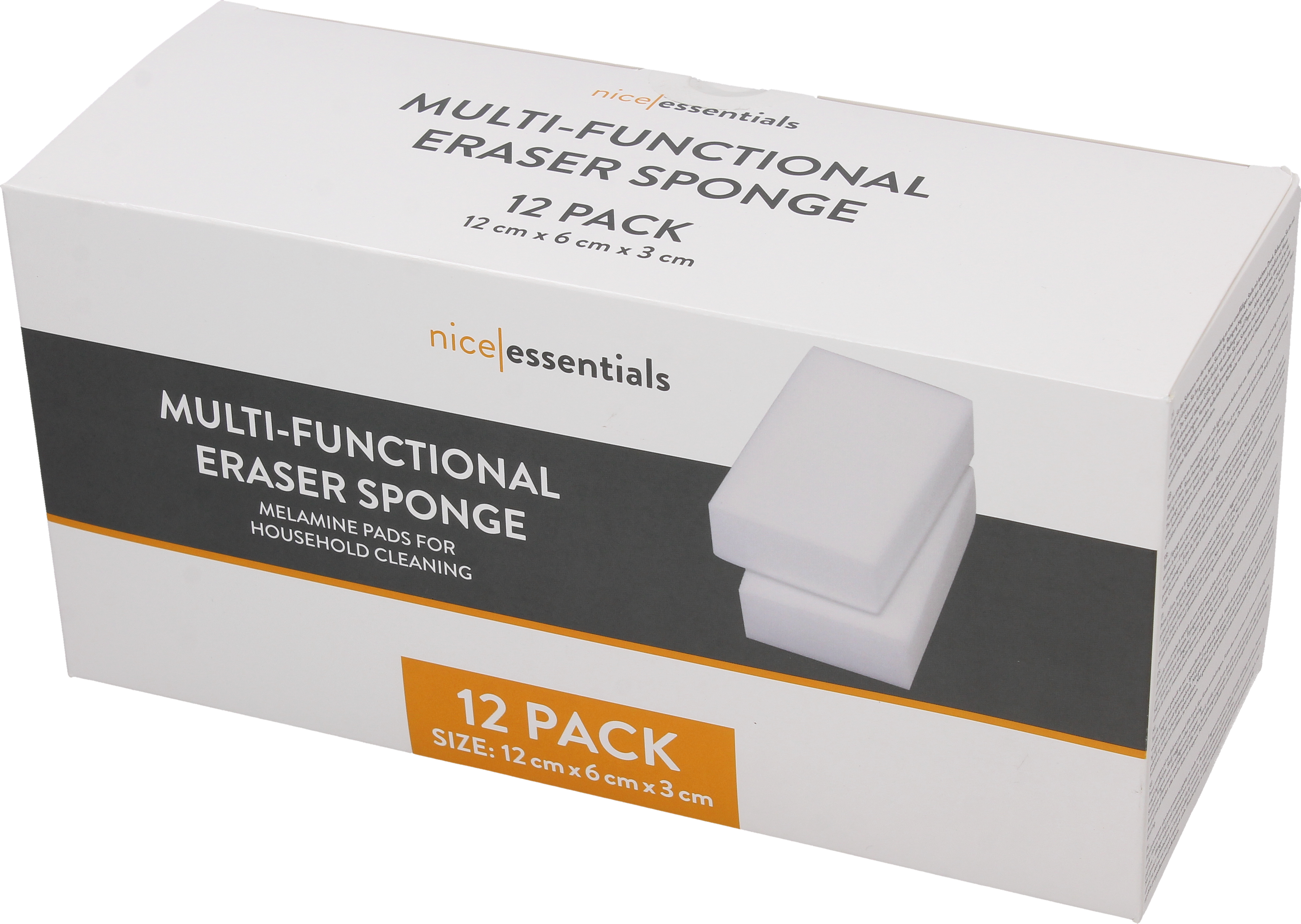 Един пакет съдържа 12 меламинови гъби за почистване (12 x 6 x 3 см).
