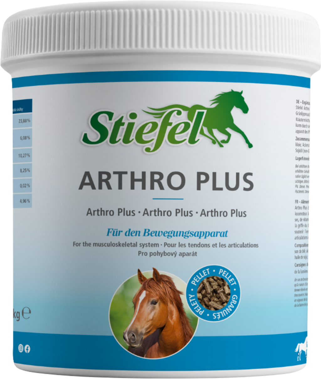 Stiefel Arthro Plus е мощен микс за мускулно-скелетната система. Благодарение на комбинацията от 30% новозеландска зеленоуста мида на прах, витамини, микроелементи и смес от билки с дяволски нокът, Stiefel Arthro Plus може да има положителен ефект върху ставите и сухожилията и да има положителен ефект върху важната синовиална течност.