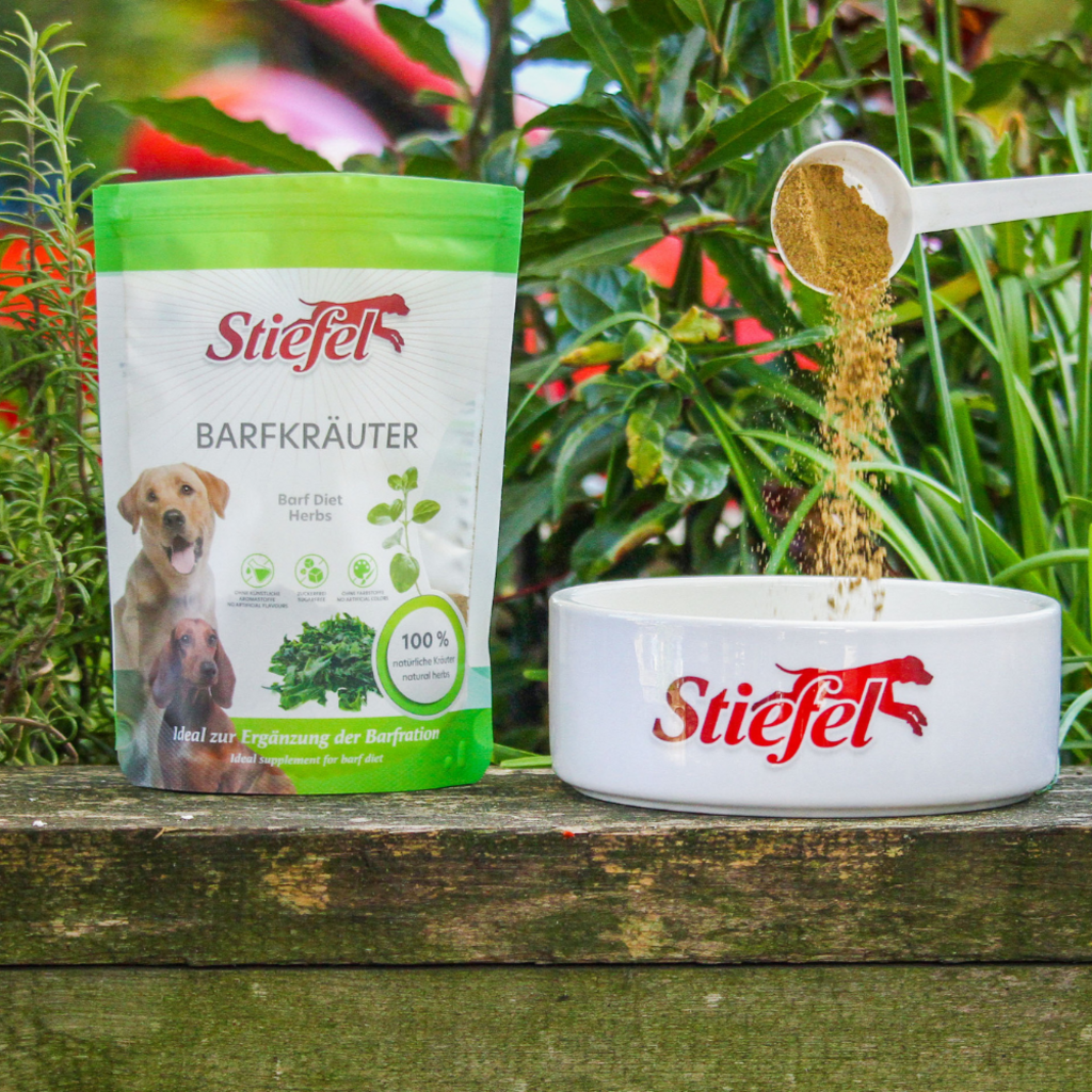 Билките Stiefel BARF са натурална, висококачествена билкова смес с риган, мащерка, шипки и пробиотични съставки, които подпомагат здравословната чревна флора. Тази билкова смес е подходяща като добавка към ежедневната BARF диета. Препоръка за хранене: Кучета до 10 кг: 1 г на ден Кучета 10-20 кг: 1-2 г на ден Кучета 20-40 кг: 2-4 г на ден Кучета над 40 кг: 4-6 г на ден