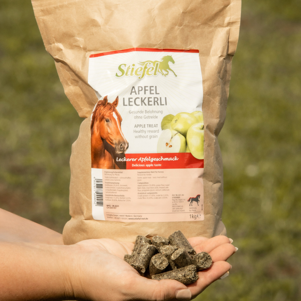 Ябълковите лакомства Stiefel са без зърно, здравословни лакомства с вкус на ябълка. Ябълковите лакомства са подходящи като вкусна награда, например след тренировка.