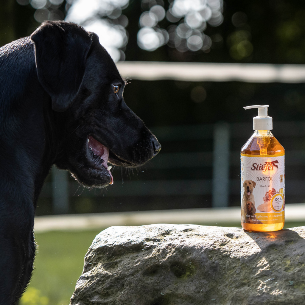 Stiefel BARF Oil е висококачествена смес от богати на хранителни вещества масла, които допълват ежедневната BARF диета на вашето куче. Stiefel BARF Oil може да допринесе за балансирана диета. Инструкции за хранене: Кучета до 10 кг: 2-4 мл на ден; Кучета 10-20 кг: 4-8 мл на ден; Кучета 20-40 кг: 8-12 мл на ден; Кучета над 40 кг: 14-16 мл на ден. Инструкции за съхранение: Съхранявайте на хладно и сухо място, далеч от светлина. Използвайте веднага след отваряне.