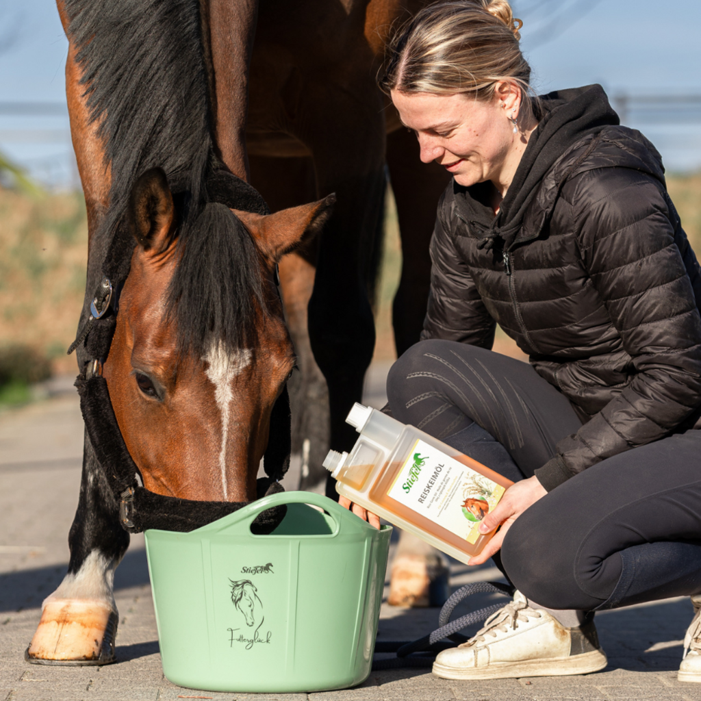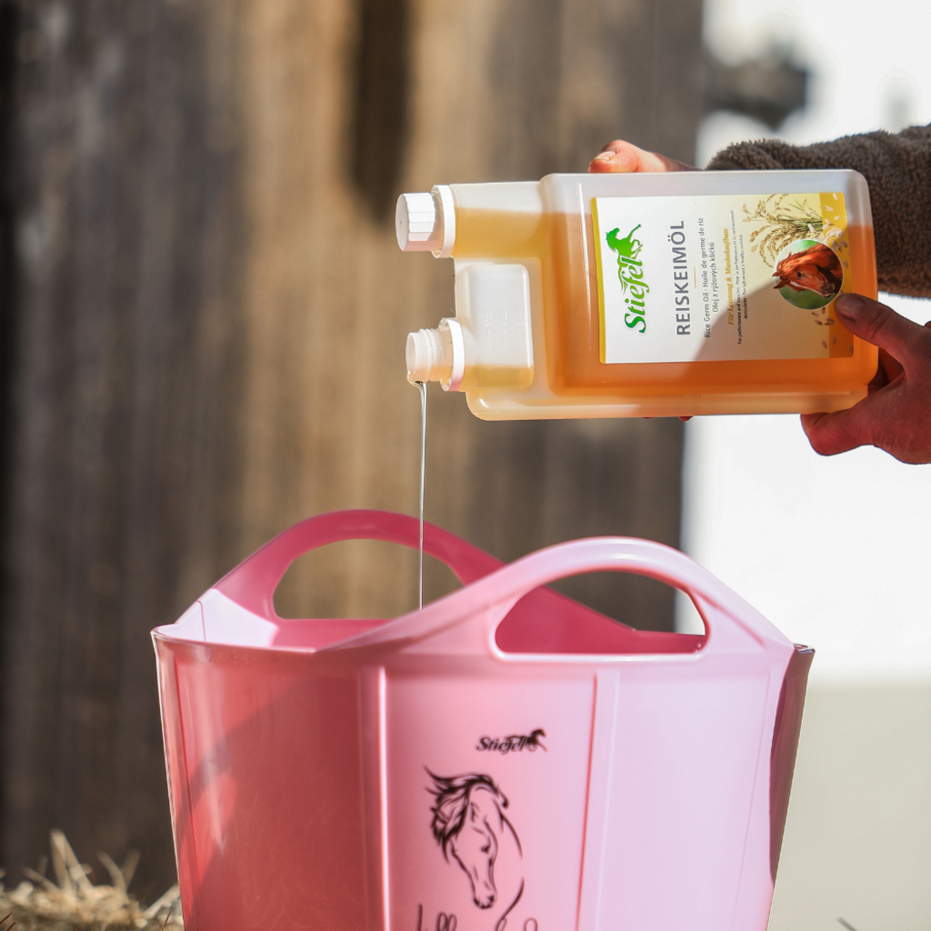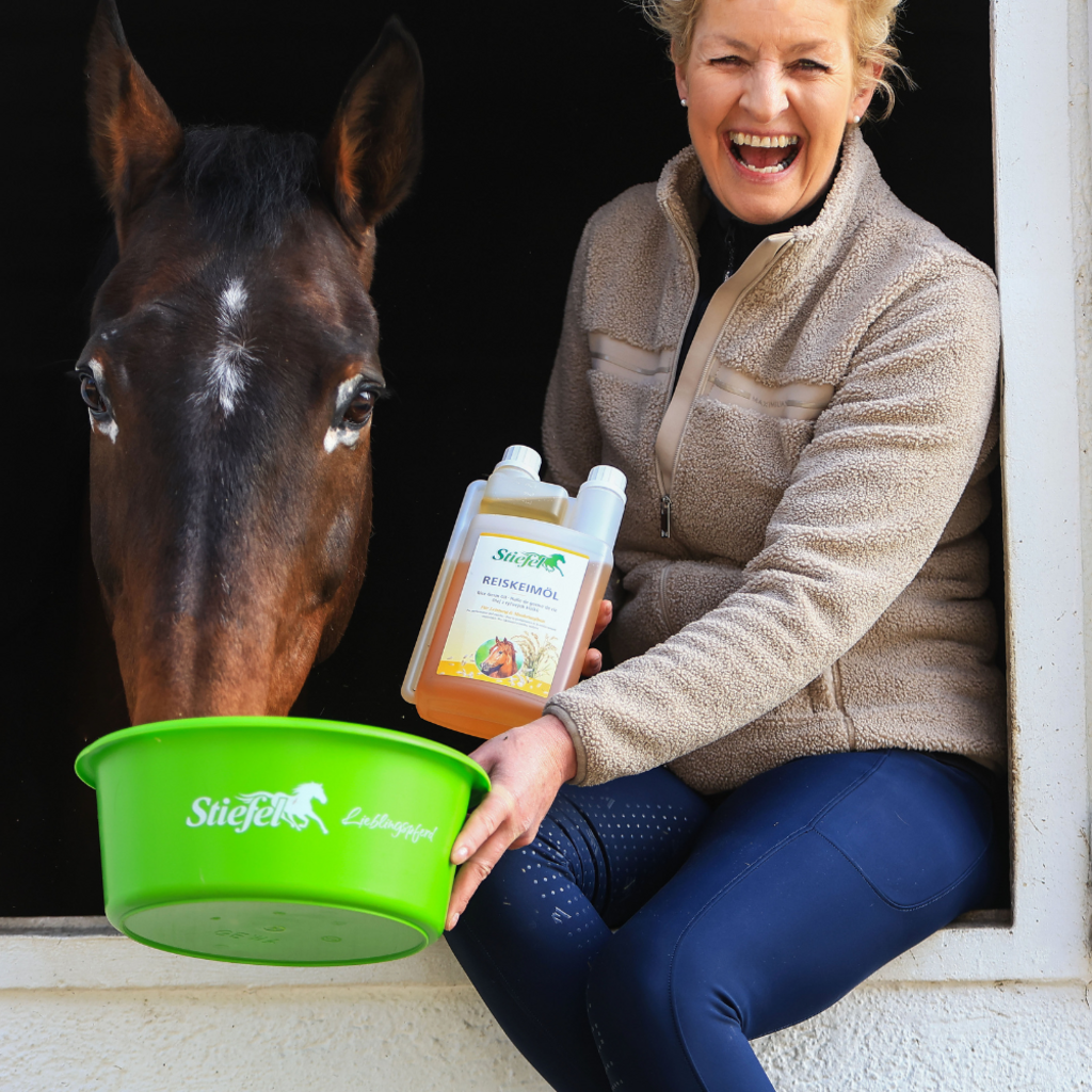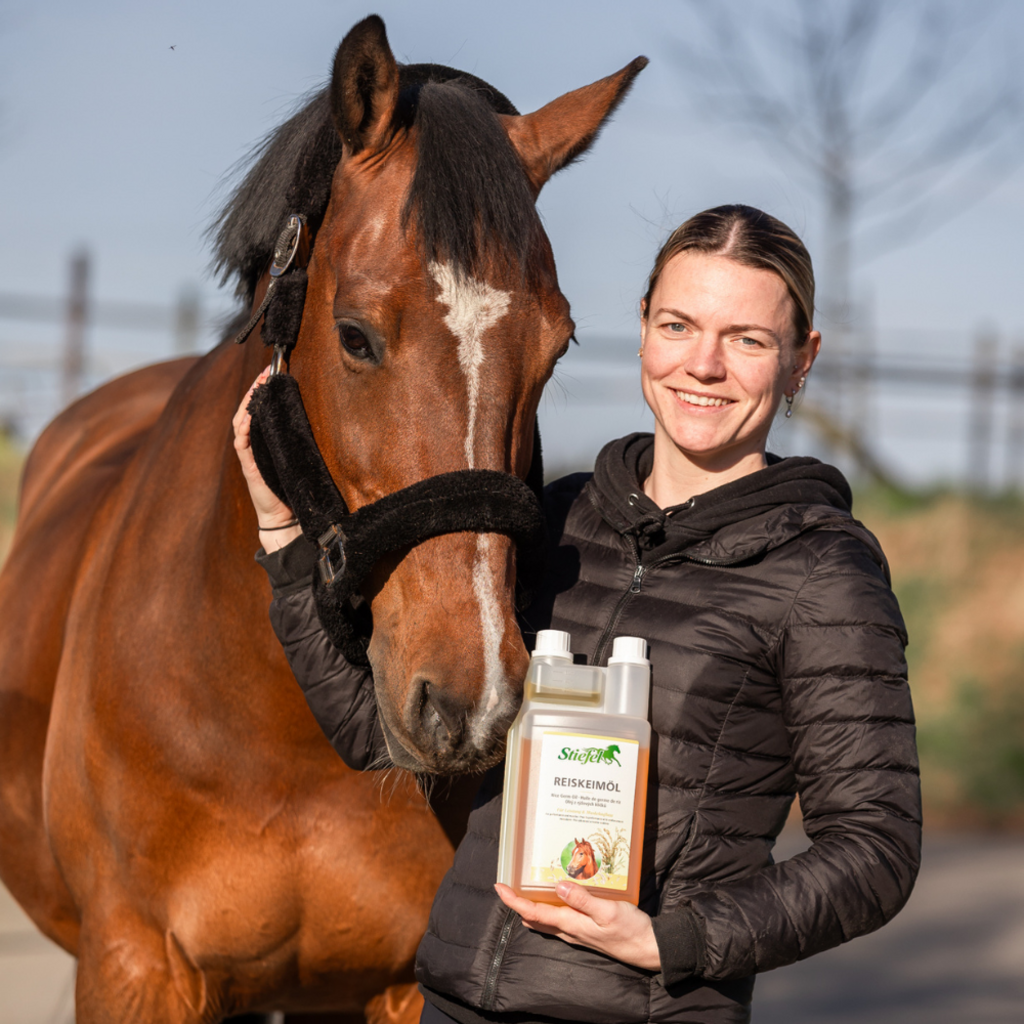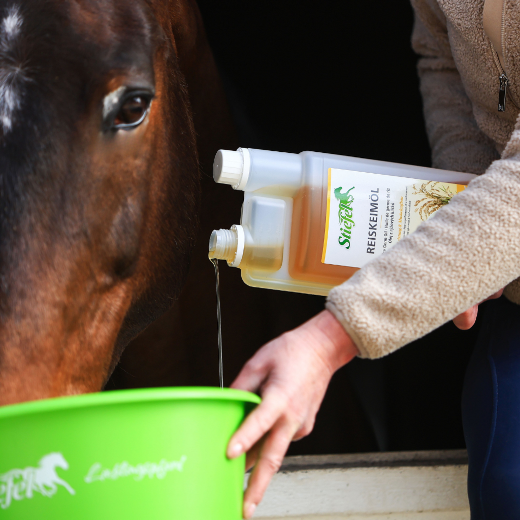 Маслото от оризови зародиши Stiefel може да подпомогне изграждането на мускули и да подобри производителността благодарение на естествения гама оризанол, който съдържа. Безвкусното масло също е богато на есенциални мастни киселини и естествен витамин Е. Конете не могат сами да произвеждат есенциални мастни киселини, така че трябва да се приемат с храната. Витамин Е може да предотврати образуването на кислородни радикали и по този начин да има антиоксидантен ефект. Витамин Е също е важен за мускулния метаболизъм и може да поддържа и насърчава регенерацията на мускулните клетки след натоварване. Маслото от оризови зародиши Stiefel е подходящо за подобряване на дневната фуражна дажба за спортни и производителни коне, но може да се използва и за коне, които са с проблеми при хранене.