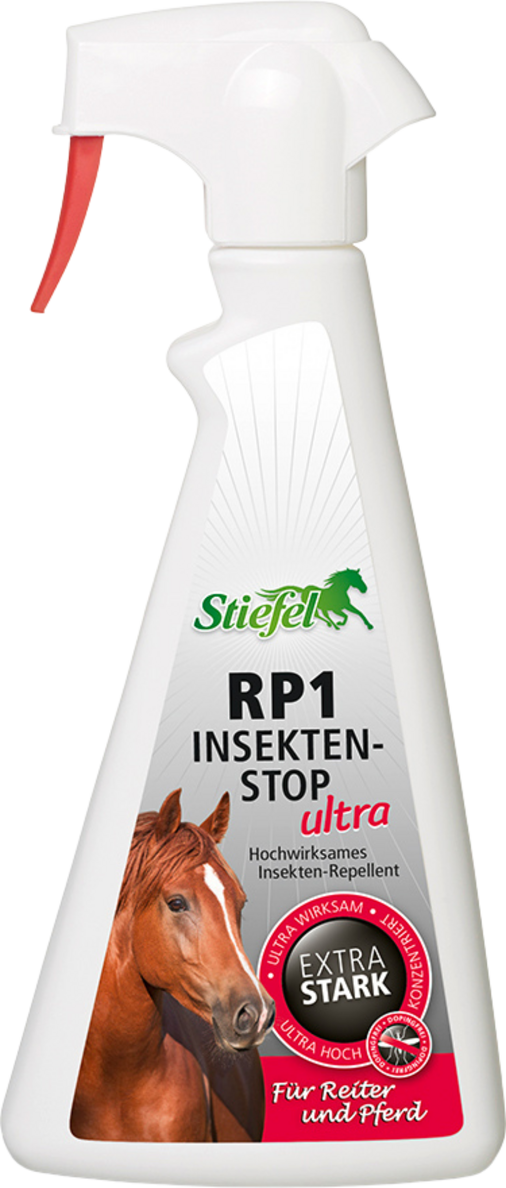 Stiefel RP1 Insect Stop Ultra е високоефективен репелент срещу насекоми с активна защита срещу кърлежи и насекоми в съответствие с Наредбата за биоцидите с повишена концентрация на активни съставки за дълготрайна защита. Активната съставка Saltidin® (Icaridin) е почти без мирис за хората и не притеснява хората или конете с неприятна миризма. Насекомите, от друга страна, възприемат миризми с помощта на сензори и се възпират от репелента.