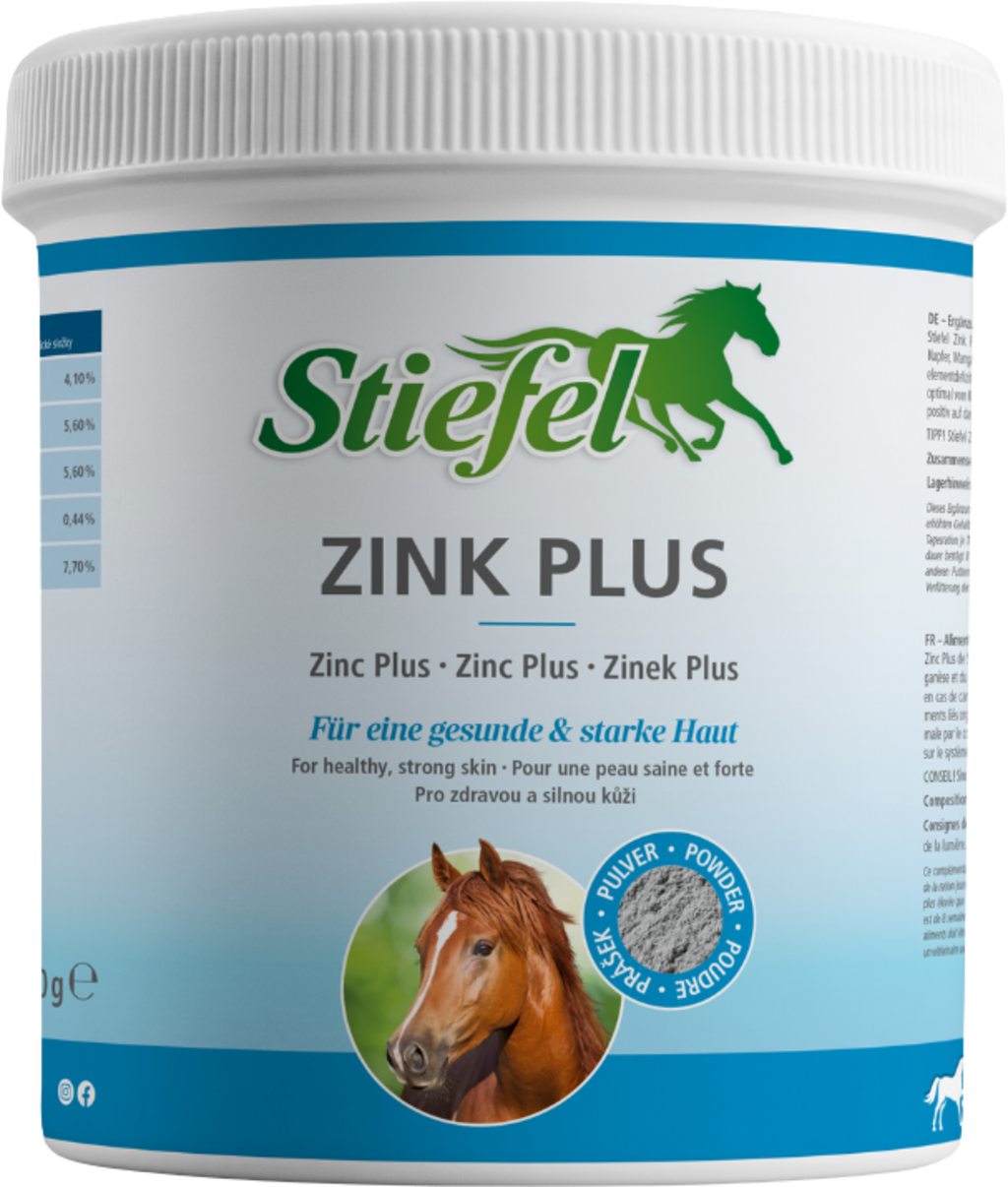 Zinc Plus от Stiefel е подходящ при недостиг на цинк и хранителни микроелементи. Продуктът може да има положителен ефект върху имунната система, кожата и роговия слой при коня. Органично свързаните микроелементи могат да бъдат оптимално използвани от тялото.