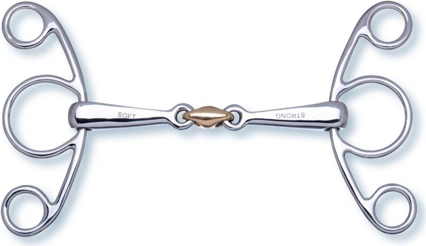 Ако не се вижда маркировка, по-меката страна е закрепена.Периодичната смяна на закрепването предотвратява десенсибилизация и изтръпване на устата на коня.
