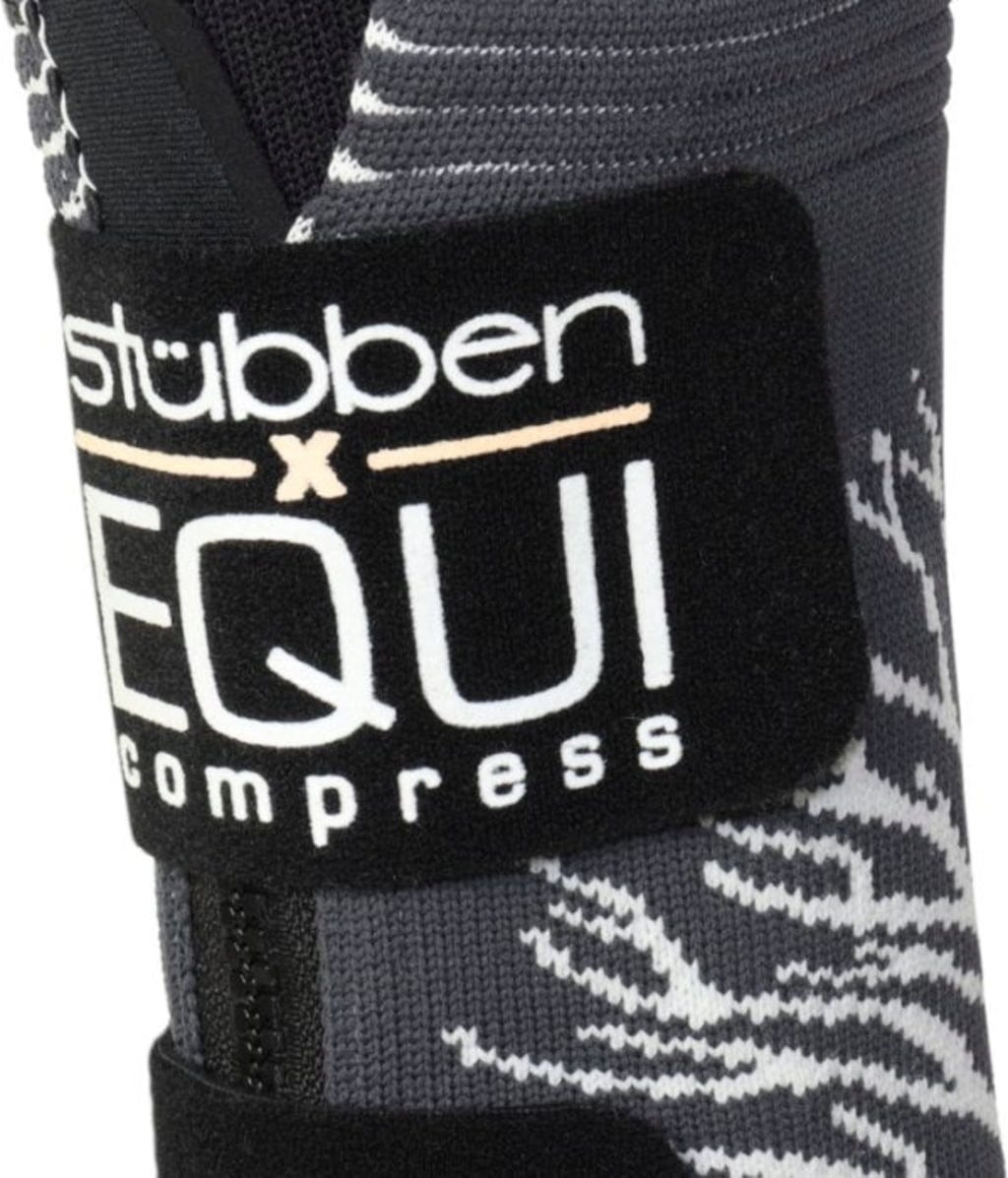 Stübben се е заел с този проблем и след няколко години изследвания е разработил компресионните чорапи EQUI Compress. Те генерират налягане на точно определени позиции, като по този начин сближават съдовите клапи, стимулират лимфните съдове и създават ефективна помпена функция. По този начин, компресът EQUI има профилактичен и дълготраен ефект, предлагайки на спортните коне и всички коне, които прекарват повече време в стоене поради състоянието си, измерима полза за първи път.