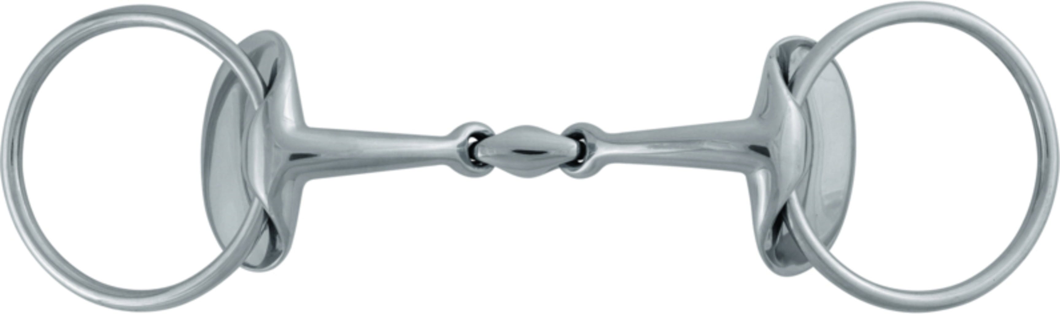 Двойно съединеният накрайник разпределя натиска равномерно върху езика и пръчките - идеален за коне, които имат активна уста или трябва да бъдат стимулирани за това.