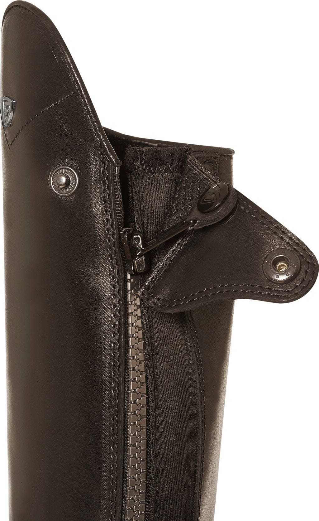 Тези елегантни гладки кожени панталони съчетават анатомична кройка с чиста елегантност и отличен комфорт при носене. Еластичните вложки по протежение на прасеца гарантират, че горната част приляга перфектно към крака на ездача. Освен това, вътрешната част на прасеца е с неплъзгаща се кожа за по-добро задържане в седлото. Оборудвани са със заден цип YKK, дръжка на ципа и тик-так закопчаване, за да се държи плъзгачът на ципа сигурно на място. Фино метално лого от външната страна допълва изискания дизайн.