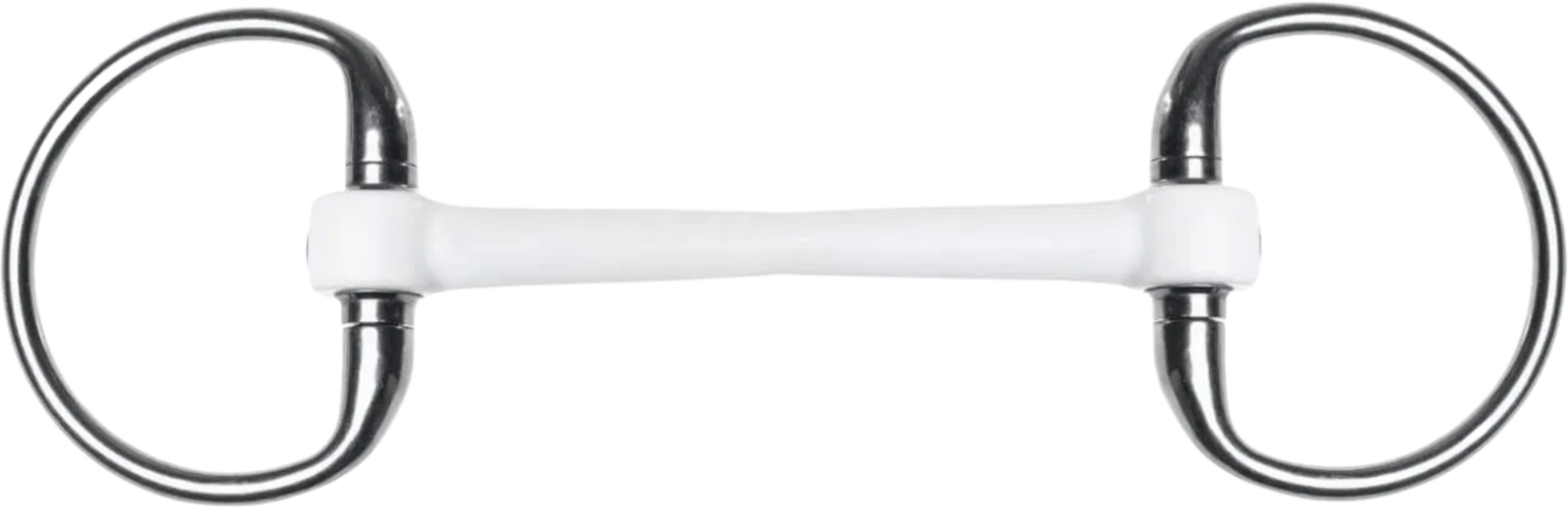 Комбинацията от еластична пластмасова щанга и фиксирани пръстени предлага предимството на директните помощни средства чрез юздите. Освен това, щангата стои тихо в устата на коня, предотвратявайки прищипване на ъглите на устата.