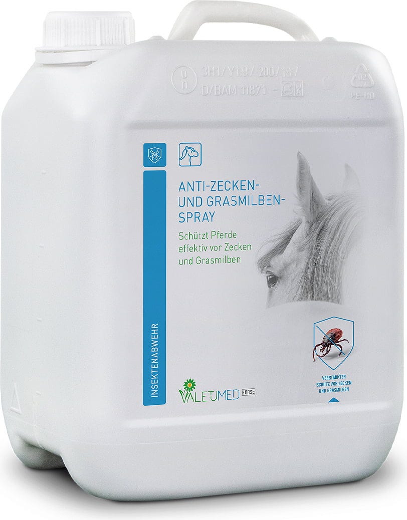 През лятото насекомите често създават дискомфорт на вашия кон. Този спрей осигурява надеждна защита, особено срещу кърлежи и тревни акари, които често остават незабелязани.