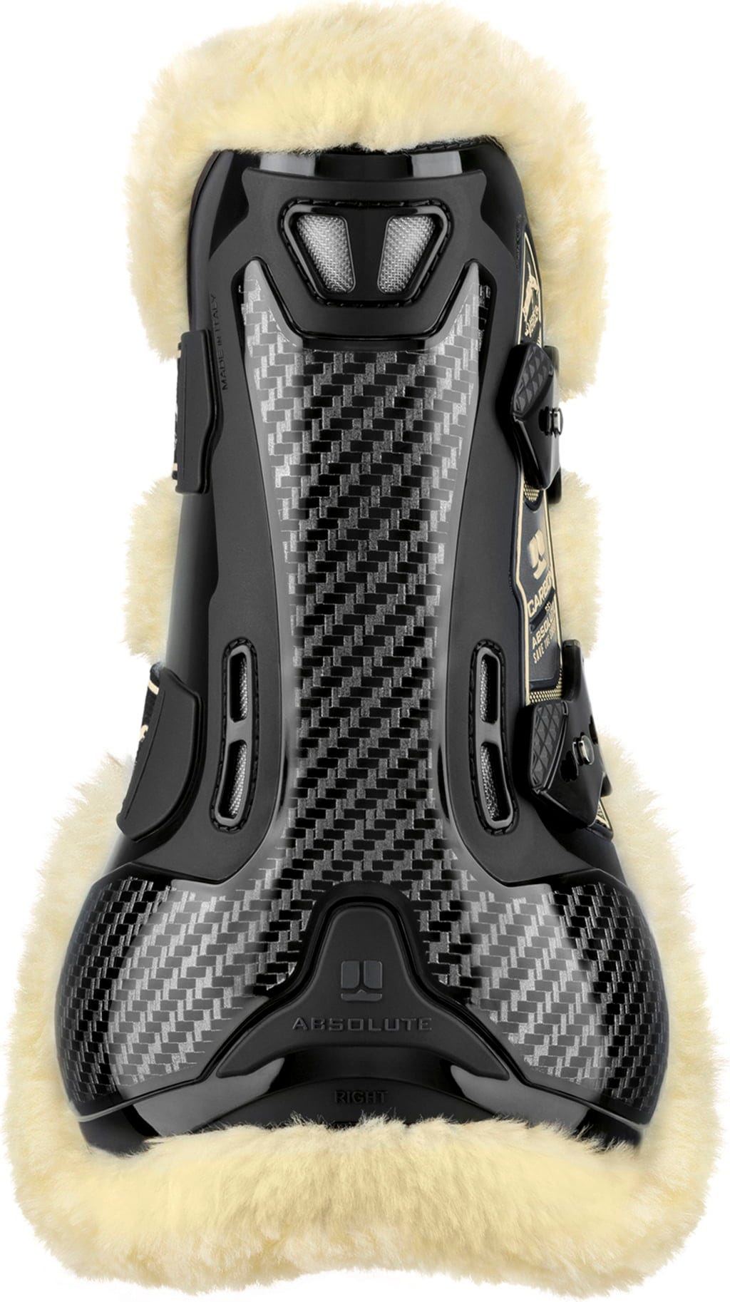 С ботушите Carbon Gel Absolute Save The Sheep можете надеждно да защитите предните крака на коня си – с максимален комфорт. Комбинацията от абсорбиращ ударите Nitrex гел и здрав Y-образен карбон осигурява оптимална защита за сухожилията и ставите. Подплатата Techno Sheepskin предлага меко и дишащо усещане. Перфектни за амбициозни ездачи, които ценят качеството, функционалността и хуманното отношение към животните.