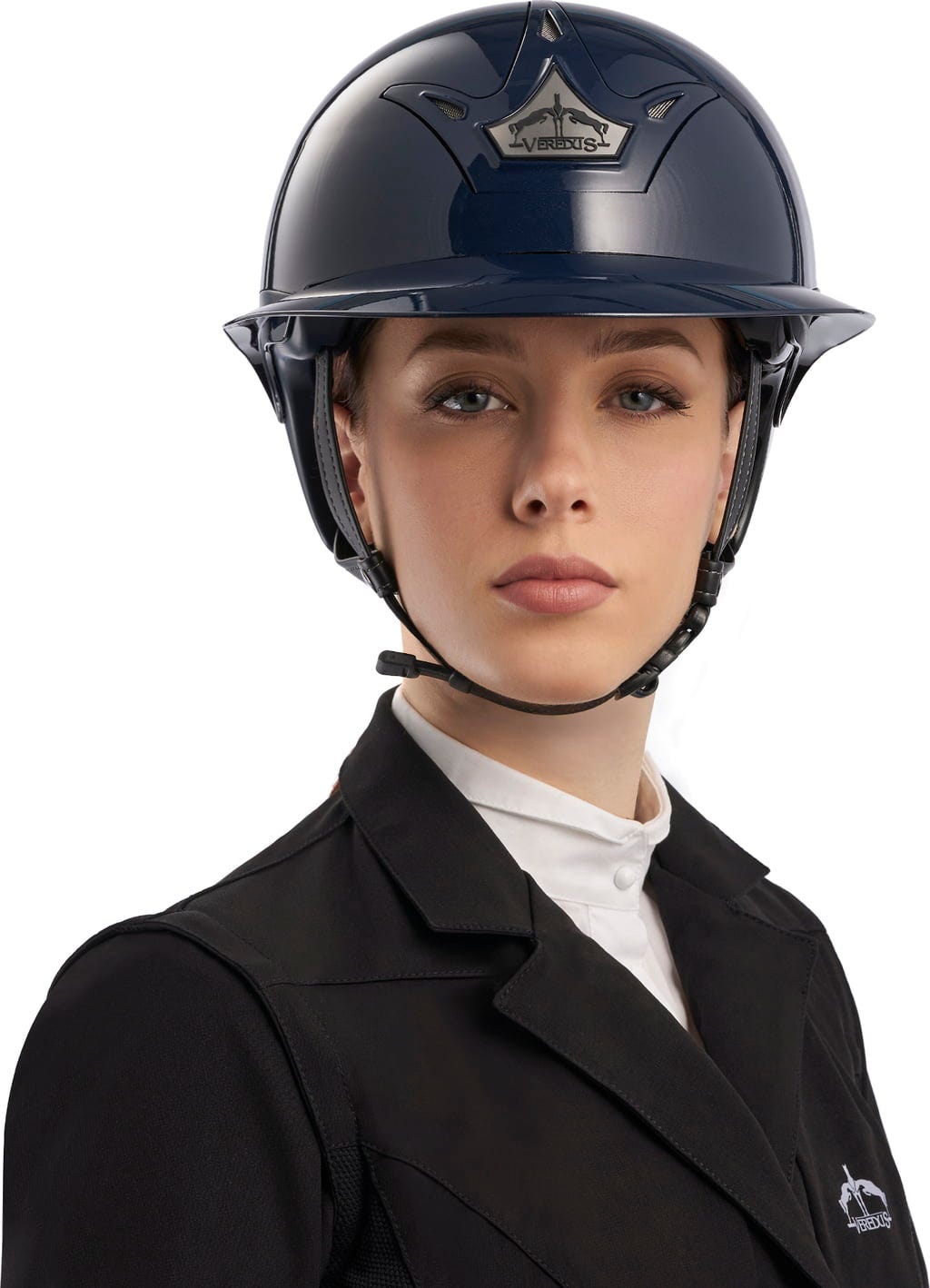 Външната обвивка е изработена от здрав поликарбонат с вградени вентилационни отвори, които осигуряват оптимална циркулация на въздуха. Вътре, EPS сърцевина осигурява надеждна защита от удар, докато анатомично оформеният протектор за врата и триточковото закопчаване от синтетична кожа осигуряват сигурно прилягане и висок комфорт при носене. Особено практично: Свалящата се, переща се вътрешна подплата, изработена от плат JET с дишащ филтър, осигурява комфортен климат на каската дори при продължителна употреба. Vita GST е одобрена от FEI и отговаря на действащия стандарт EN 1384:2023, като по този начин отговаря на най-високите изисквания в състезателните конни спортове. Визуално каската впечатлява със спортния си, но елегантен вид, включващ емблематичното лого VEREDUS – символ на стил и безопасност в седлото.