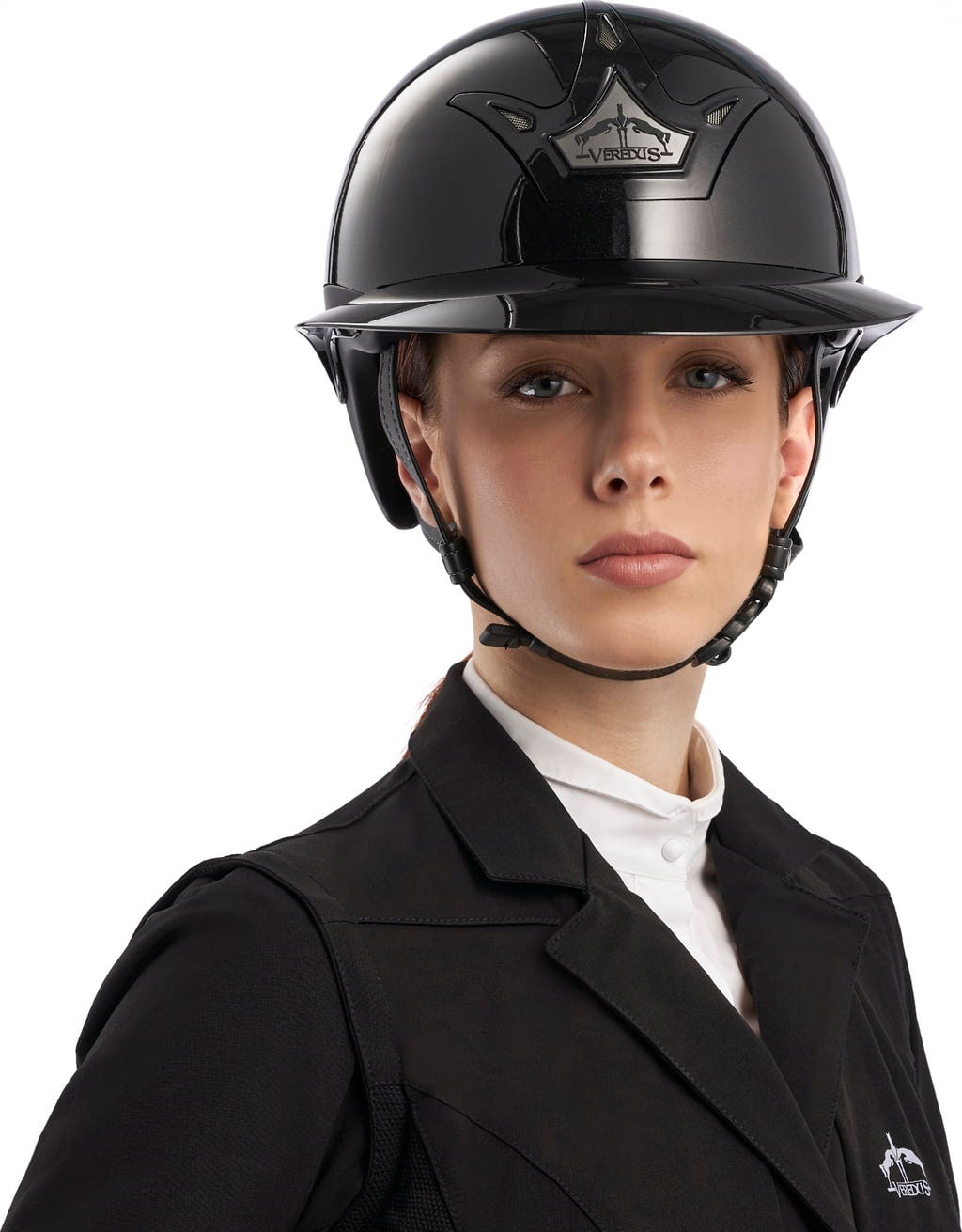 Външната обвивка е изработена от здрав поликарбонат с вградени вентилационни отвори, които осигуряват оптимална циркулация на въздуха. Вътре, EPS сърцевина осигурява надеждна защита от удар, докато анатомично оформеният протектор за врата и триточковото закопчаване от синтетична кожа осигуряват сигурно прилягане и висок комфорт при носене. Особено практично: Свалящата се, переща се вътрешна подплата, изработена от плат JET с дишащ филтър, осигурява комфортен климат на каската дори при продължителна употреба. Vita GST е одобрена от FEI и отговаря на действащия стандарт EN 1384:2023, като по този начин отговаря на най-високите изисквания в състезателните конни спортове. Визуално каската впечатлява със спортния си, но елегантен вид, включващ емблематичното лого VEREDUS – символ на стил и безопасност в седлото.
