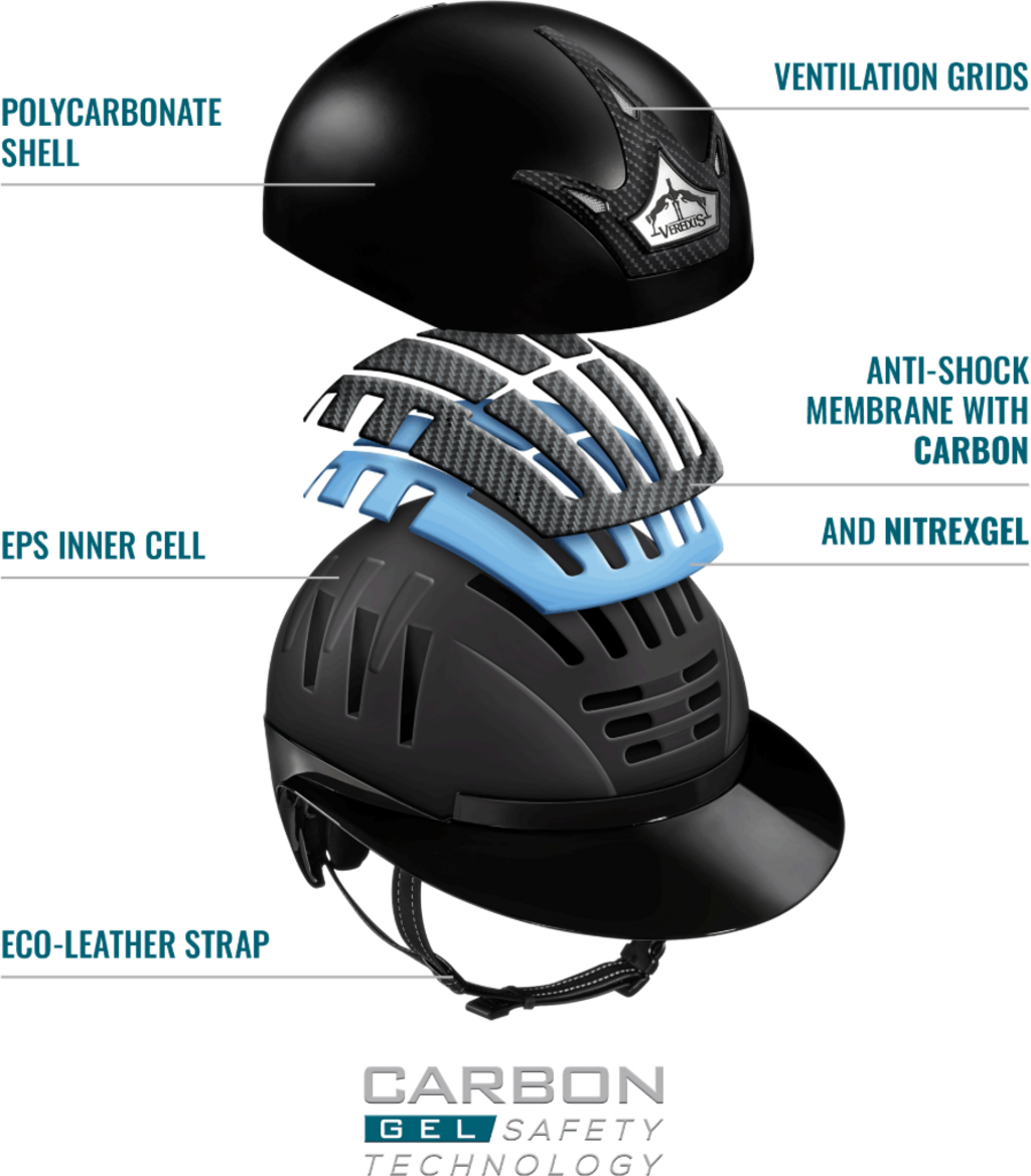 Каската за езда Vita GST от VEREDUS съчетава най-високите стандарти за безопасност с най-съвременни технологии и отличителен външен вид. Разработена от иновативния NitrexGel, вече доказал се в конните спортове, тази каска предлага надеждна защита от удар при минимално тегло. Амортисьорните свойства на NitrexGel осигуряват ефективно абсорбиране на енергията при удар – за максимална защита при всяко каране.