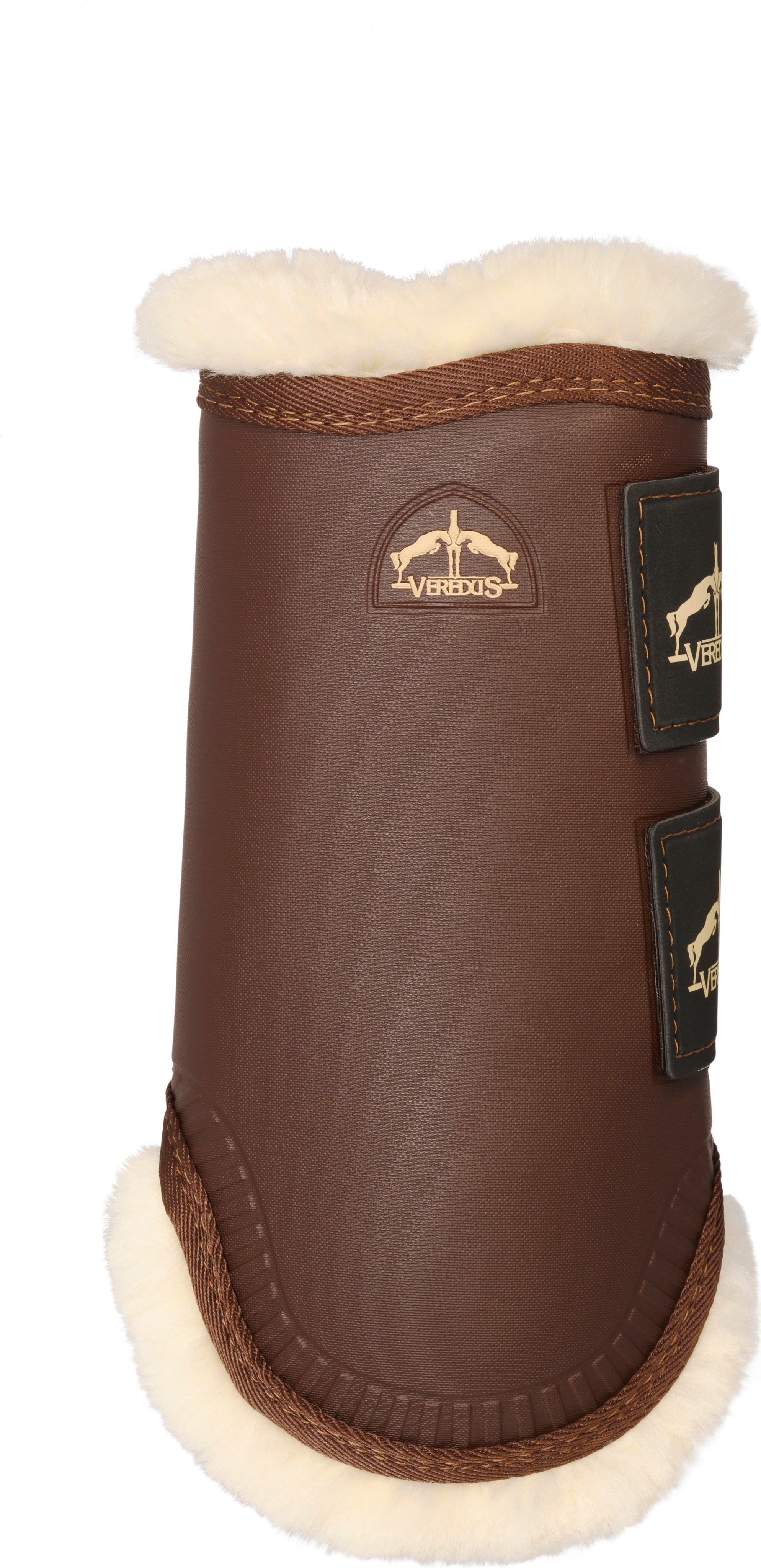 Сърцевината на продукта е иновативната обвивка, изработена от високоустойчив полимер, допълнена от вътрешната страна от абсорбираща удари EVA мембрана. Това надеждно предпазва краката на коня от външни удари, докато плюшената подплата Techno Sheepskin осигурява меко усещане. Тази изкуствена агнешка кожа не само изглежда елегантно, но е и изключително лесна за поддръжка и нежна към кожата.