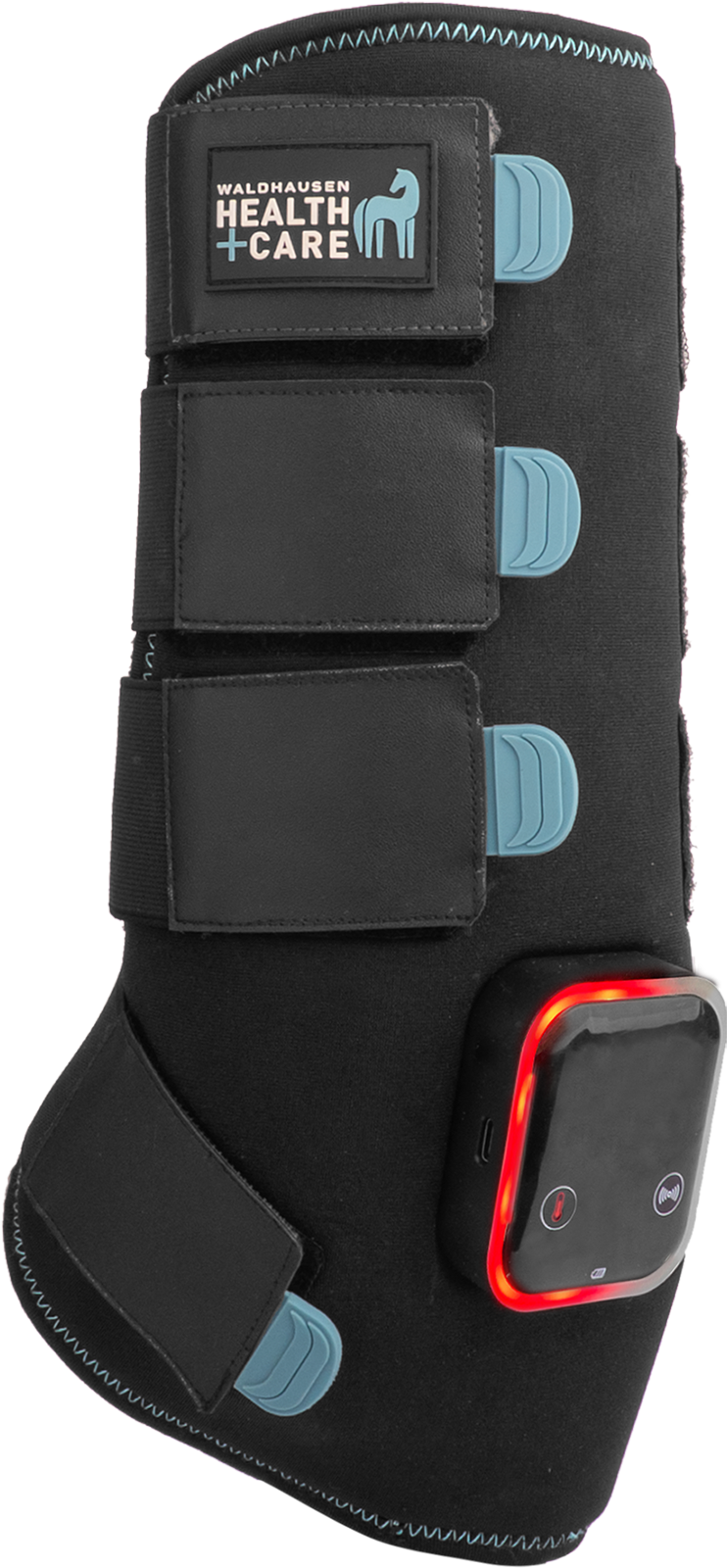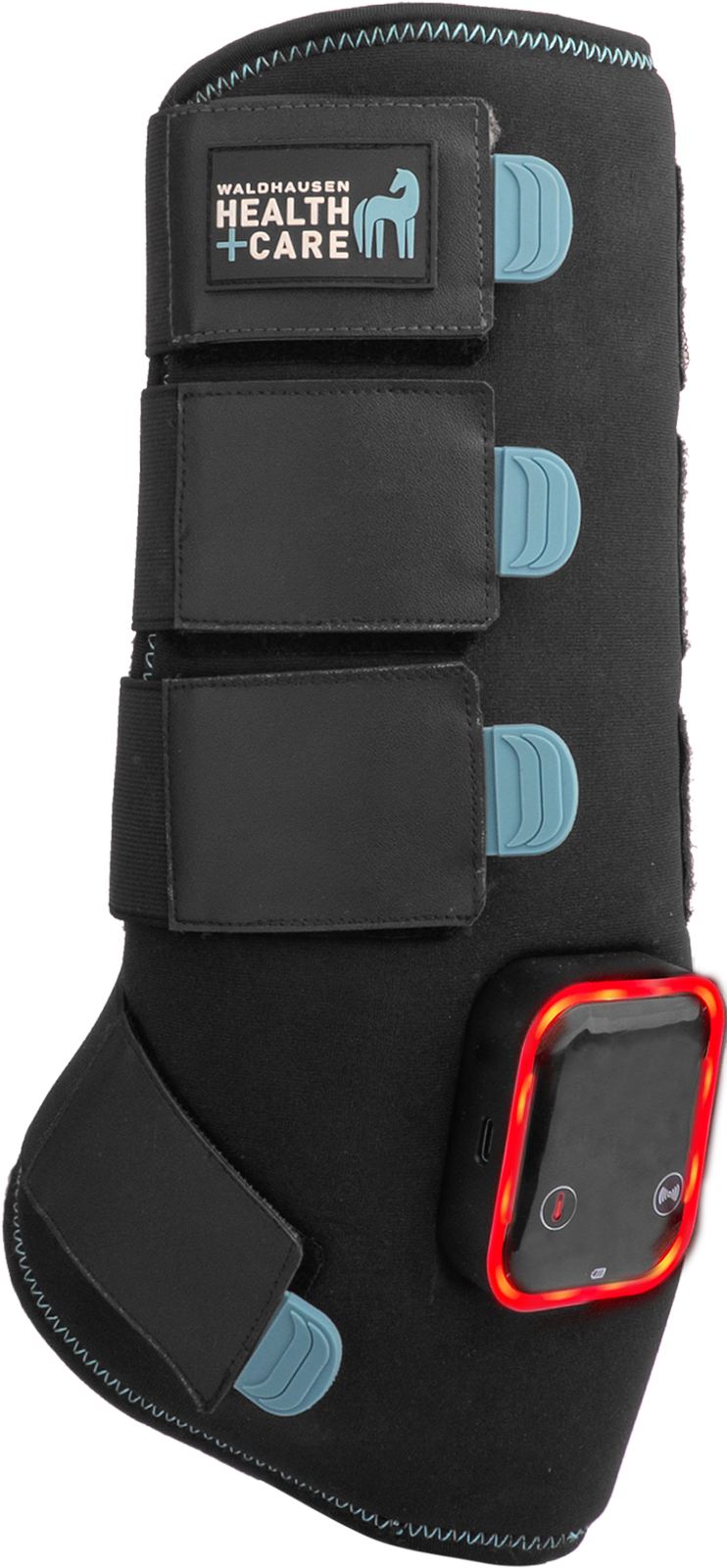 Waldhausen Health + Care TecSupreme ви предлага високотехнологична 3-в-1 система за целенасочена подкрепа на краката на коня във фазите на подготовка, натоварване и възстановяване. Чрез комбинацията от вибрация, топлина и охлаждане можете гъвкаво да реагирате на актуалните нужди на вашия кон. Благодарение на вградената батерия и интуитивното управление чрез тъчскрийн директно върху гамашата, не са необходими допълнителни аксесоари, което прави употребата в ежедневието в конюшнята значително по-удобна.