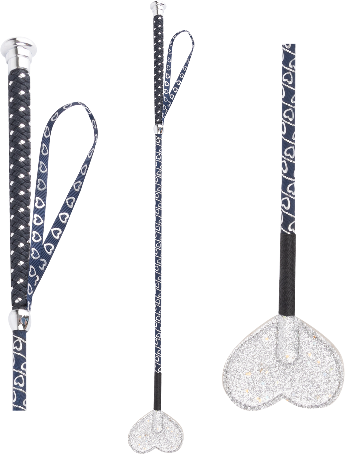 Специален акцент е сладък попър във формата на сърце, украсен с брокат. Практична найлонова примка гарантира, че комбито ще остане здраво на китката по време на езда. Това прави всяка тренировка радостно преживяване със стилен аксесоар!