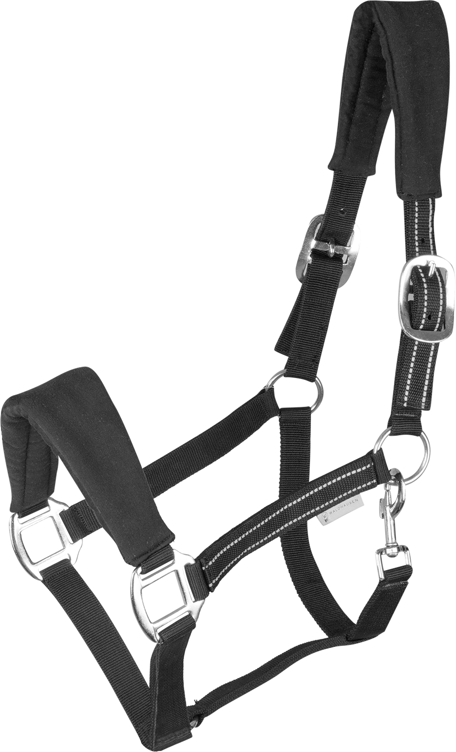 Този висококачествен халтер от Waldhausen е истински грабител на вниманието! Носът и накрайникът са завършени с меко подплатена алкантара, която е изключително удобна на допир. За максимално разпределение на натиска и превъзходен комфорт, поларените вложки са допълнително подсилени с мека подплата. Това предпазва чувствителните зони и ефективно предотвратява протриването. Халтерът може да се регулира от двете страни на накрайника за прецизно и индивидуално прилягане. Елегантността и удобството се съчетават, за да създадат първокласен стабилен аксесоар!