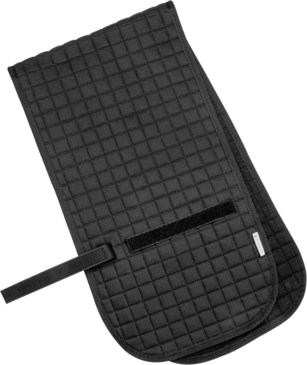 Външният материал и вътрешната подплата са изработени от издръжлива смес от 65% полиестер и 35% памук. За сигурно и безплъзгащо се прилягане можете лесно и надеждно да прикрепите подложката към корниз с две велкро ленти. Това позволява на вашия кон да се концентрира напълно върху работата си.