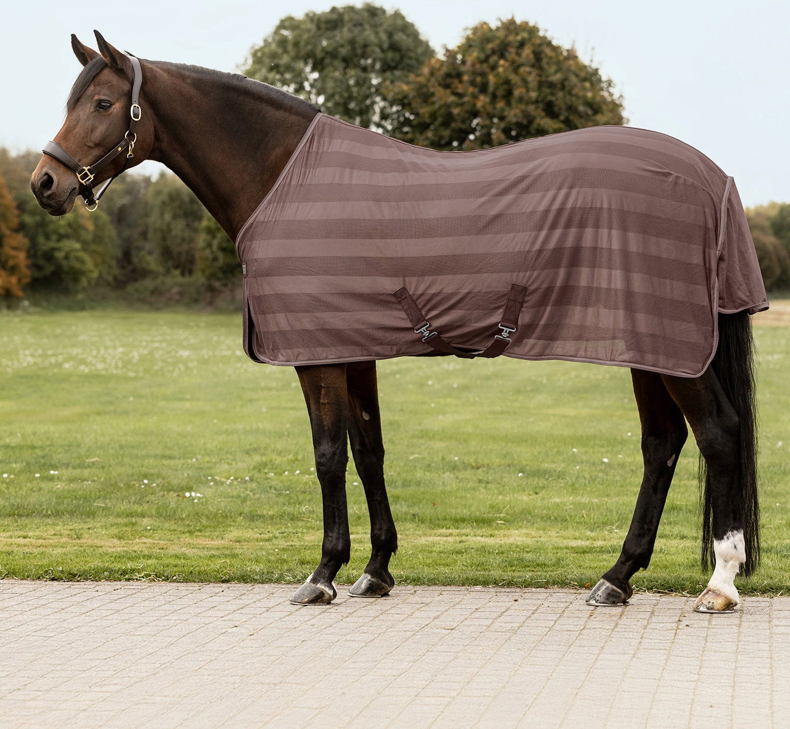 Въпреки атрактивната си цена, това покривало не прави компромис с комфорта. Интегрираният клин дава на коня ви необходимата свобода за паша, а мекият материал в областта на гърдите защитава козината. С лесното закопчаване отпред и практичните напречни пояси, покривалото приляга здраво, а задният капак допълва защитата отзад. Здрав спътник, който прави точно това, което трябва: да поддържа коня ви спокоен през целия сезон на насекомите.