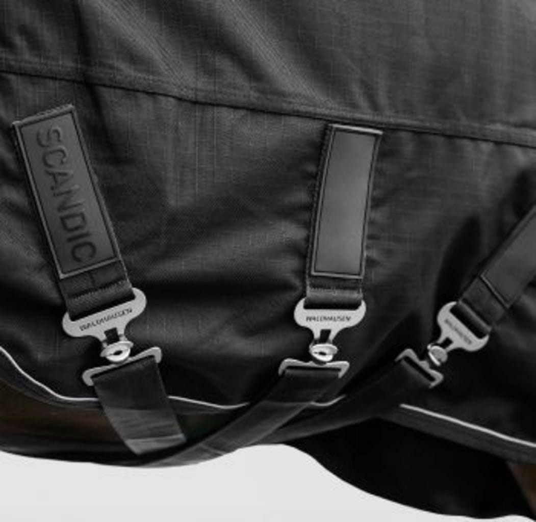 Търсите ли одеяло за открито, което ефективно предпазва коня ви от непредсказуемо време, без да жертва комфорта и свободата на движение? Тогава многослойното одеяло Waldhausen Scandic е перфектният избор за преходните сезони и меките зимни дни. Специалната характеристика на това одеяло се крие в неговото усъвършенствано управление на топлината: В чувствителната област на гърба, където топлината излиза най-бързо, пълнеж от 150 г осигурява целенасочена изолация. Отстрани се използва по-лек пълнеж от 50 г, което намалява общото тегло и оптимизира прилягането. Резултатът: Вашият кон се поддържа на идеална температура без прегряване. Изработено от здрав външен материал ripstop 1200 denier, това одеяло предлага отлична защита: То е надеждно водоустойчиво и силно дишащо, за да предотврати натрупването на топлина. Антибактериалната подплата осигурява хигиена и е нежна към чувствителната кожа. За максимален комфорт, вложките от пяна при холката нежно предотвратяват точките на натиск, а щедрият клин позволява неограничено движение. Одеялото Scandic също така печели точки с функционални детайли: Иновативното V-образно закопчаване отпред и трите здрави презрамки на корема гарантират сигурно и удобно прилягане. Изключително големият капак на опашката със светлоотразителни букви увеличава видимостта при слаба светлина. Практична функция за вас: Вложката Stay Clean поддържа одеялото чисто по време на прокарване. Осигурете на коня си защита от атмосферни влияния, която мисли напред! Забележка: Това одеяло се предлага с вложка Stay Clean директно от вътрешната страна. Тя предпазва одеялото от косми и мръсотия по време на прокарване и може лесно да се отстрани след това – така че одеялото остава безупречно, ако не ви стане! Тази вложка не е предназначена за постоянна употреба, а само за прокарване. Отстранете я, след като я пробвате, като просто я отлепите.