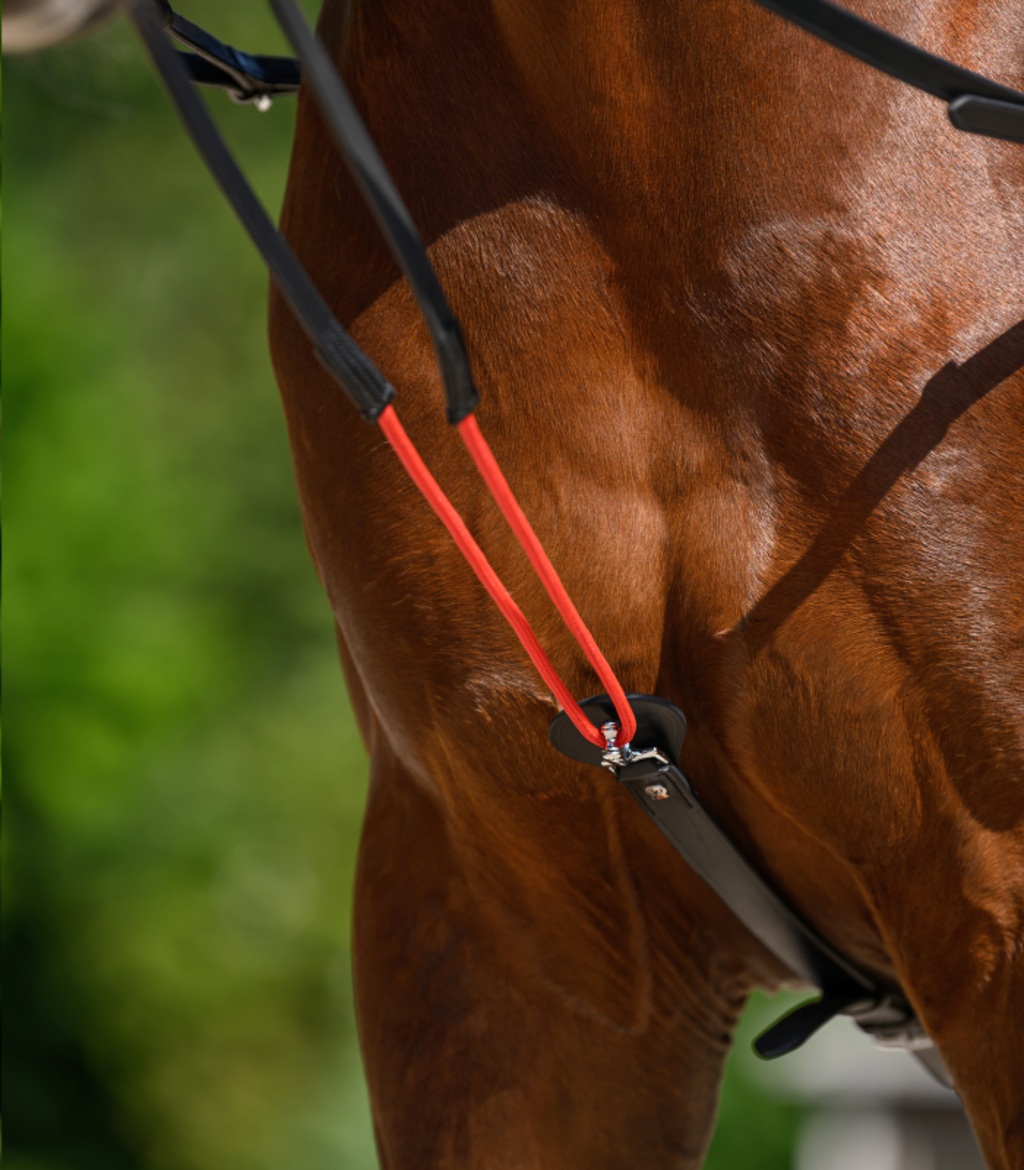 Постигнете оптимално разтягане и огъване в ежедневната си работа с иновативните юзди Waldhausen W-train Rein! Тези гъвкави и регулируеми по дължина кожени триъгълни юзди са универсално помощно средство, подходящо както за езда, така и за корндиране. Системата се закрепва към седлото или подгъва за корндиране между предните крака. Специалната характеристика: Специален юзди преминава през скрипец. Оттам се насочва обратно към подгъва през халките за юзди (отвътре навън). Крилото позволява леко освобождаване на юздите. Това насърчава особено щадящо устата огъване и гимнастическото развитие на вашия кон, без да ограничава движението му. Размери: приблизително 180 см до приблизително 215 см Ширина: приблизително 205 см до приблизително 245 см