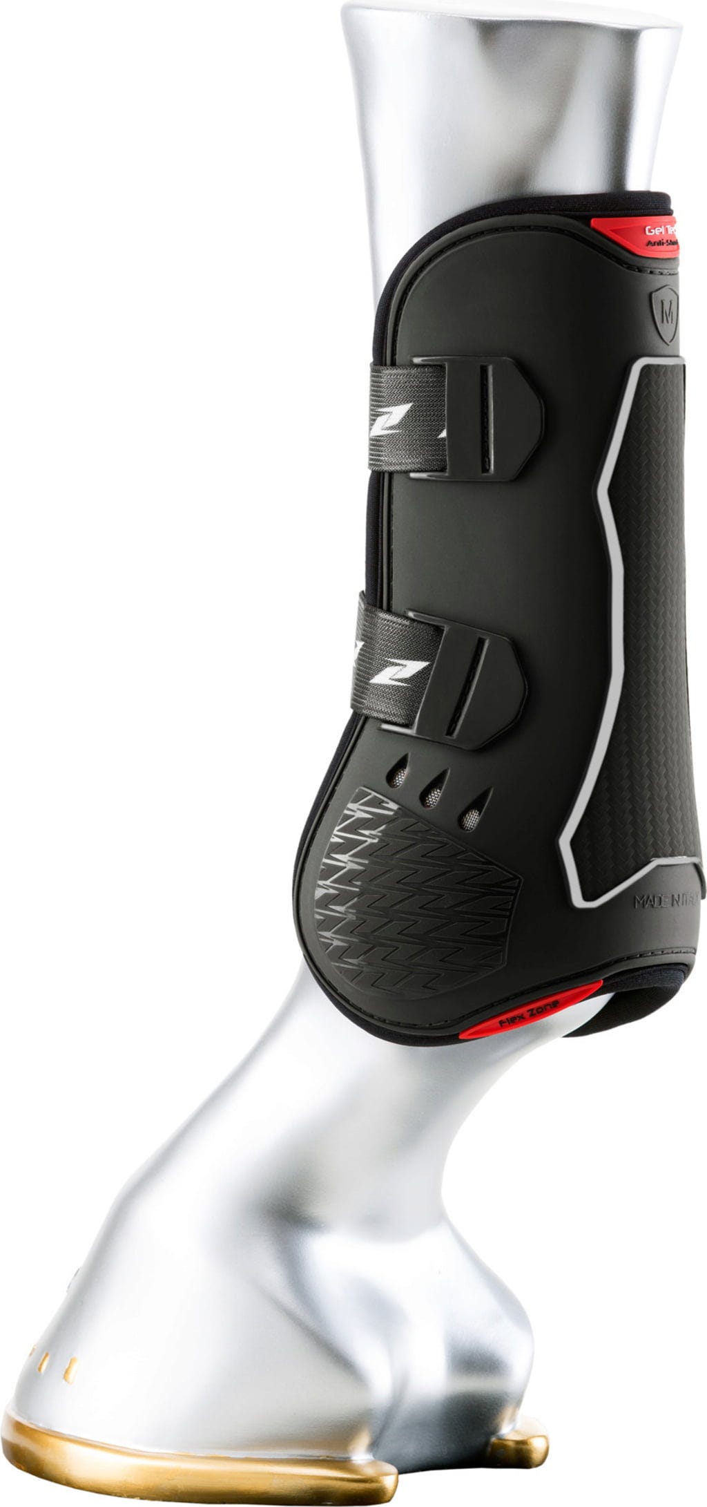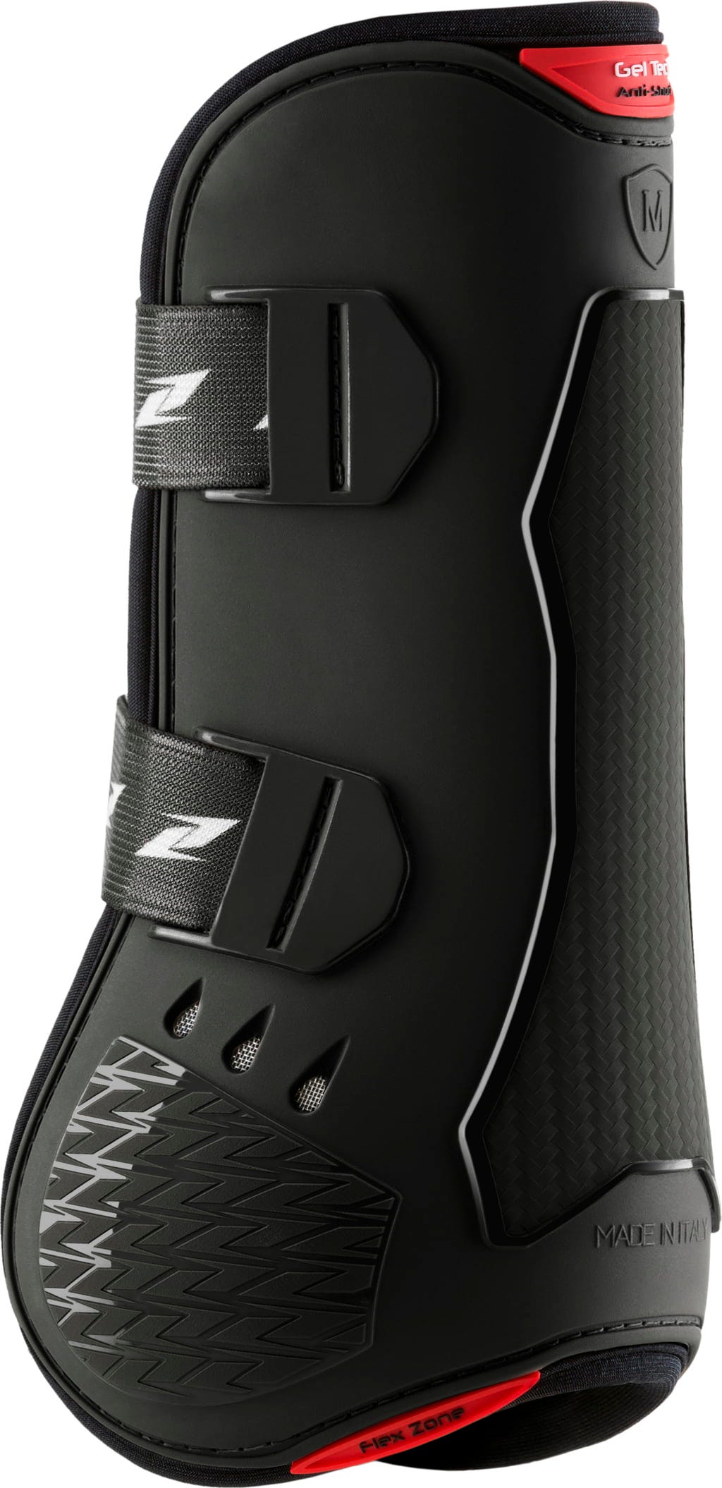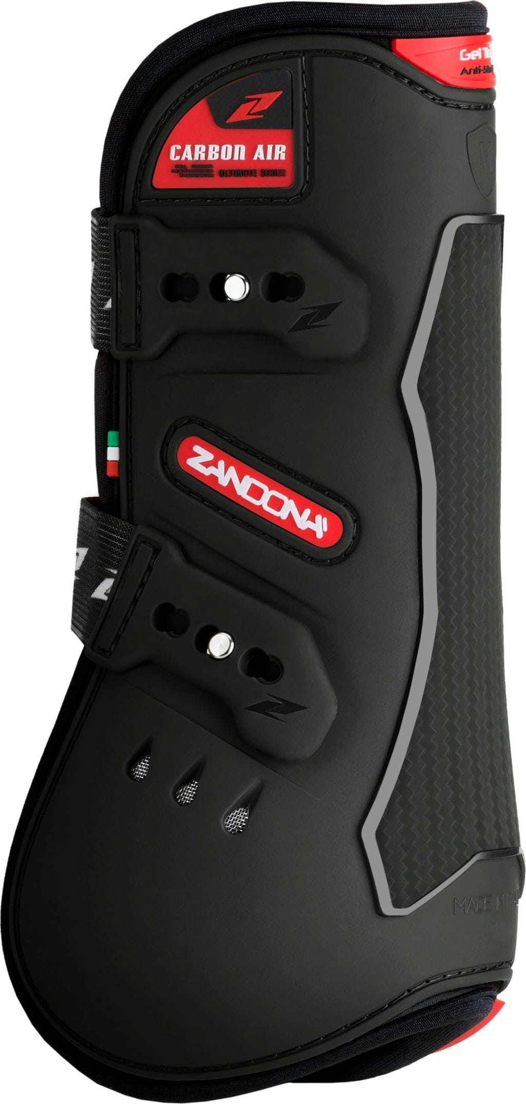 100% италианската защитна система "CARBON AIR Tendon" е разработена, за да предпази конете, участващи в скачане на препятствия, от удари и натъртвания по предните бедрени мускули и част от пищяла, като същевременно осигурява и опора за сухожилията. Ботушите се състоят от външна TPU структура с различна дебелина, която е дишаща благодарение на перфориран неопрен и вентилирана с шест вентилационни отвора.